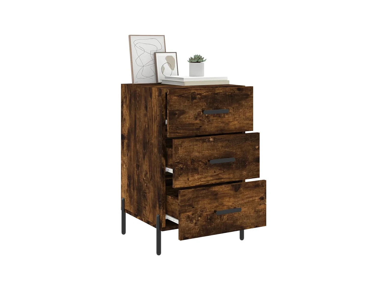 Mesita de noche madera de ingeniería roble ahumado 40x40x66 cm ES77533