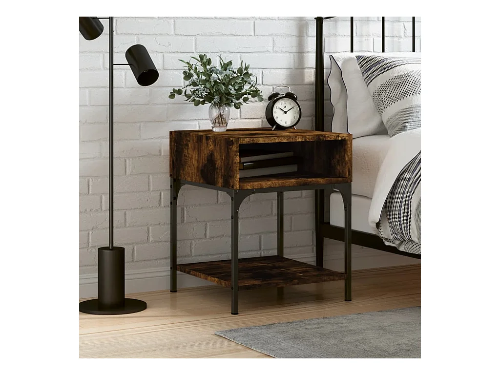 Mesita de noche madera de ingeniería roble ahumado 40x41x50 cm ES56144