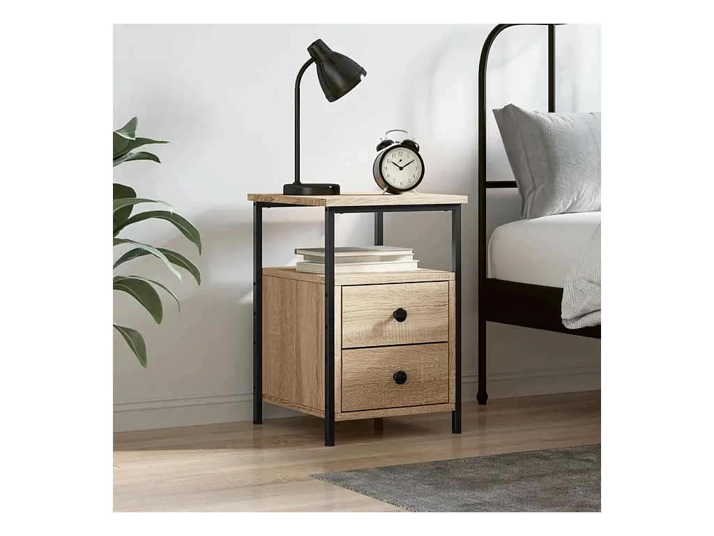 Mesita de noche madera de ingeniería roble Sonoma 34x35,5x50 cm ES60599
