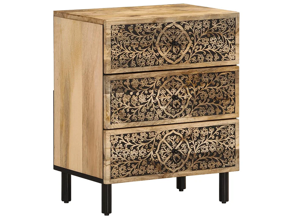 Mesita de noche madera maciza de mango 50x33x60 cm