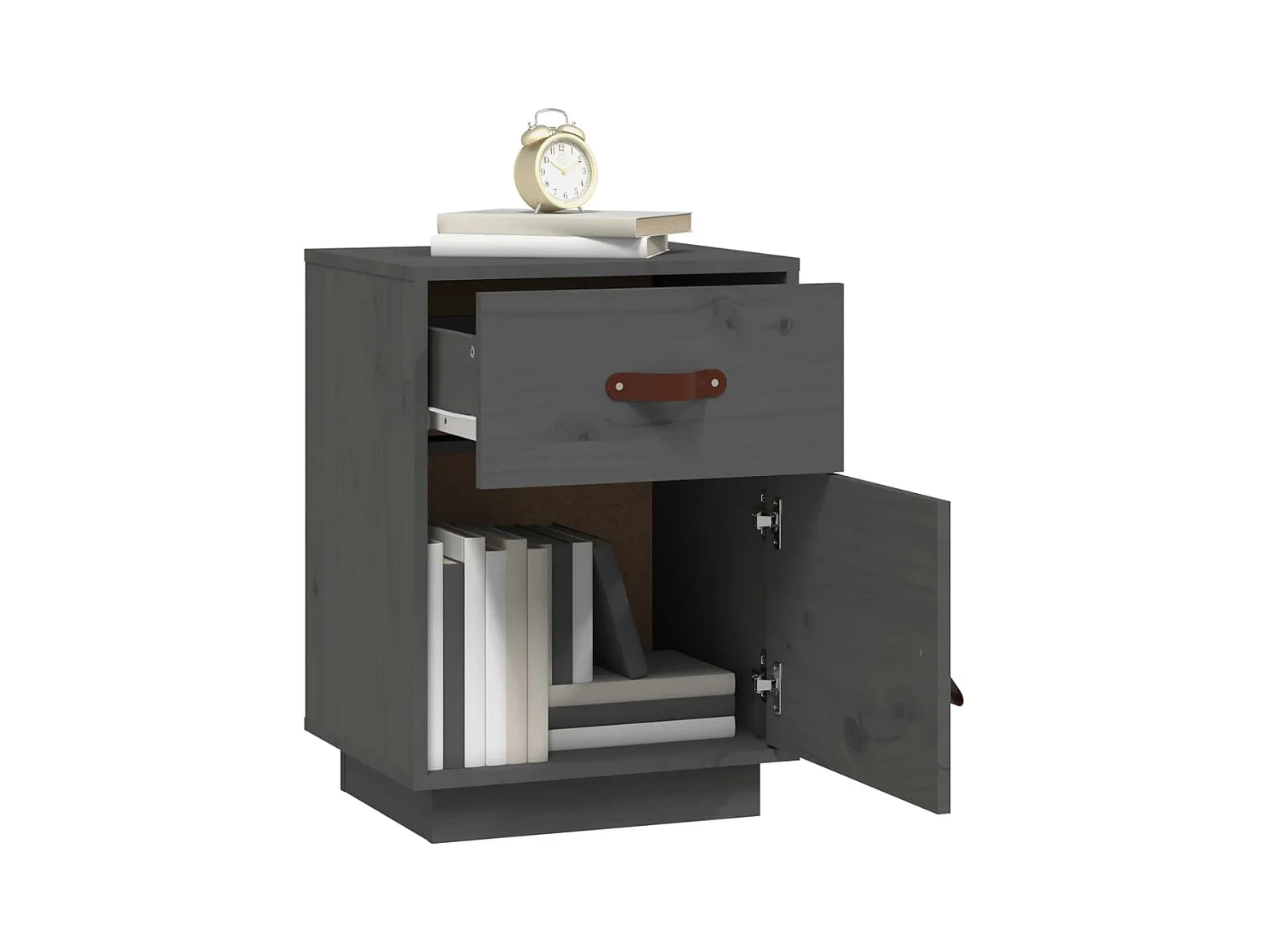 Mesita de noche madera maciza de pino gris 40x34x55 cm