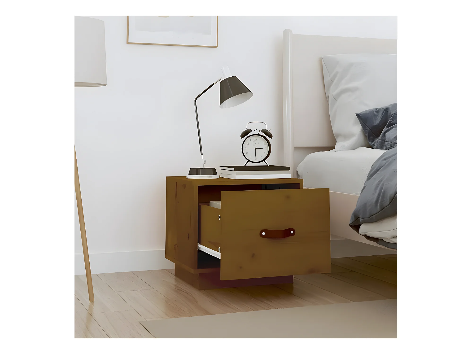 Mesita de noche madera maciza de pino marrón miel 40x34x35 cm ES70012
