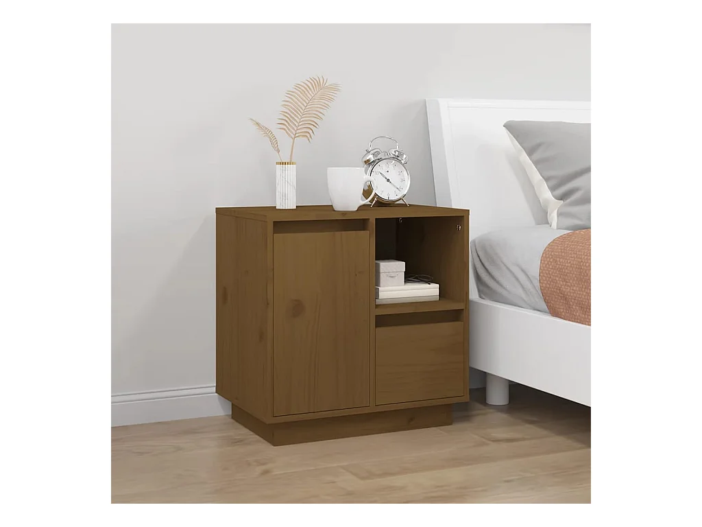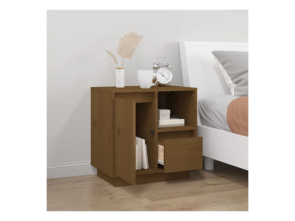 Mesita de noche madera maciza de pino marrón miel 50x34x50 cm ES55395