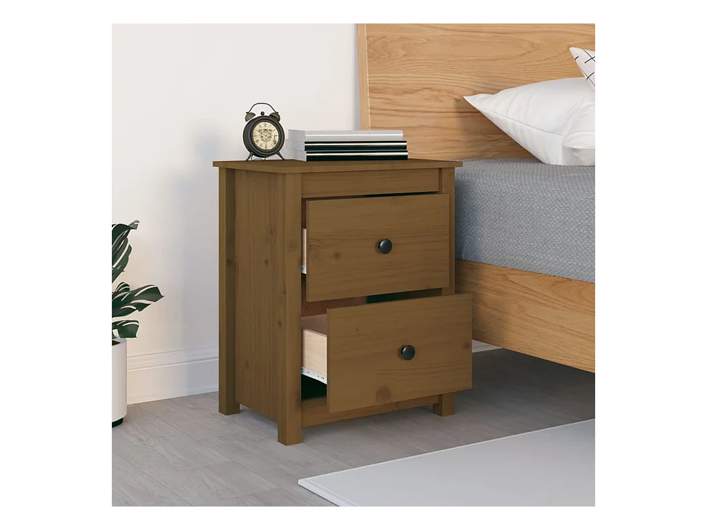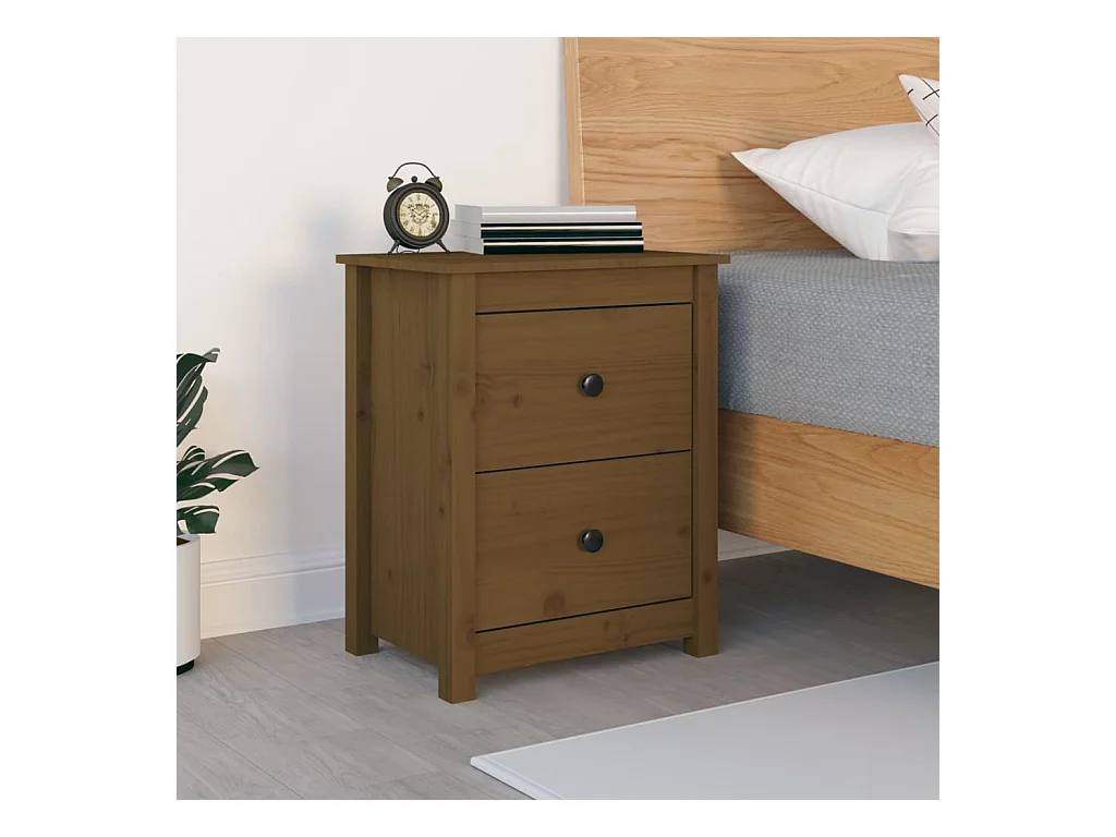Mesita de noche madera maciza de pino marrón miel 40x35x61,5 cm ES61867