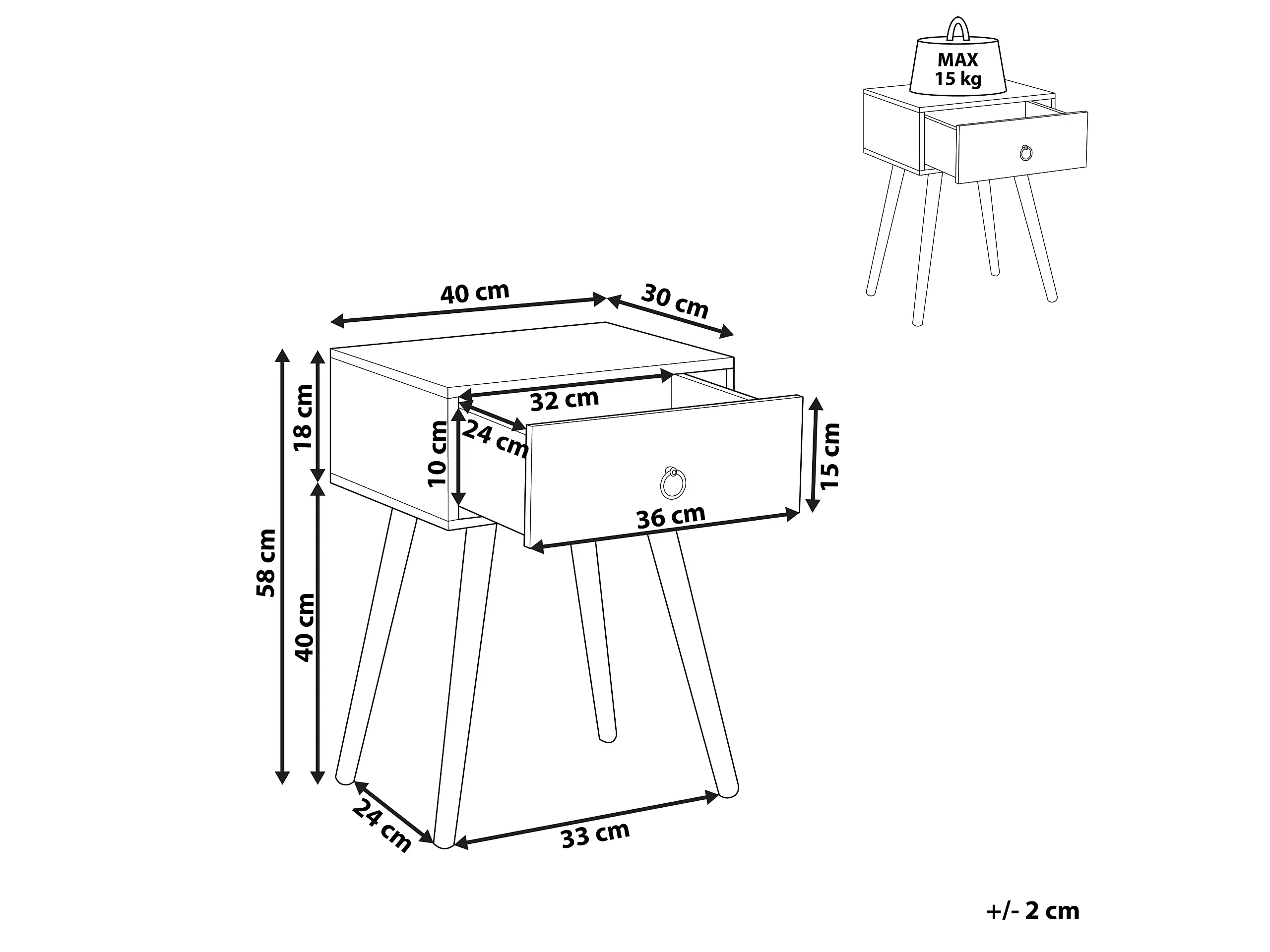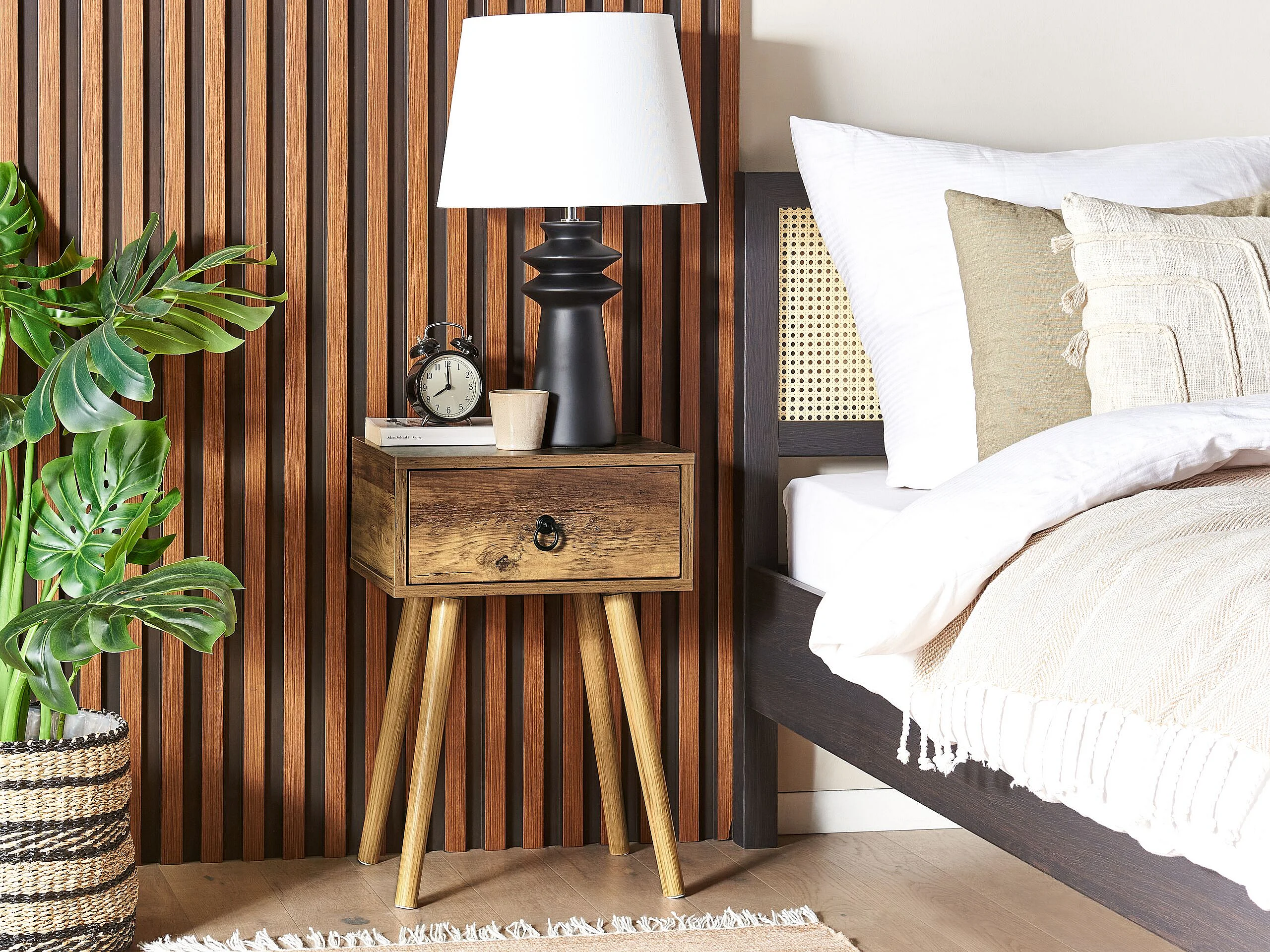 Mesa de noche de 1 cajón Madera oscura BATLEY