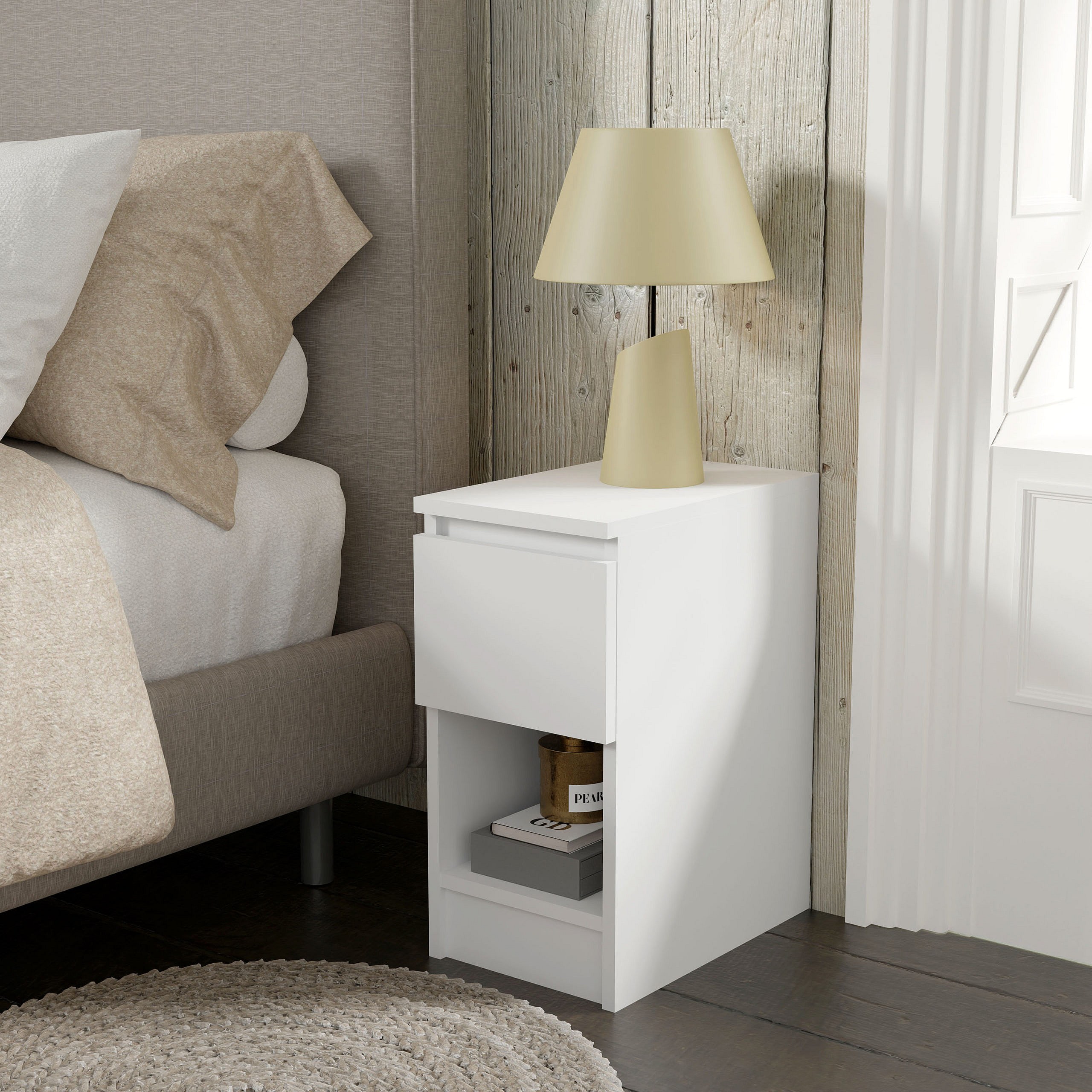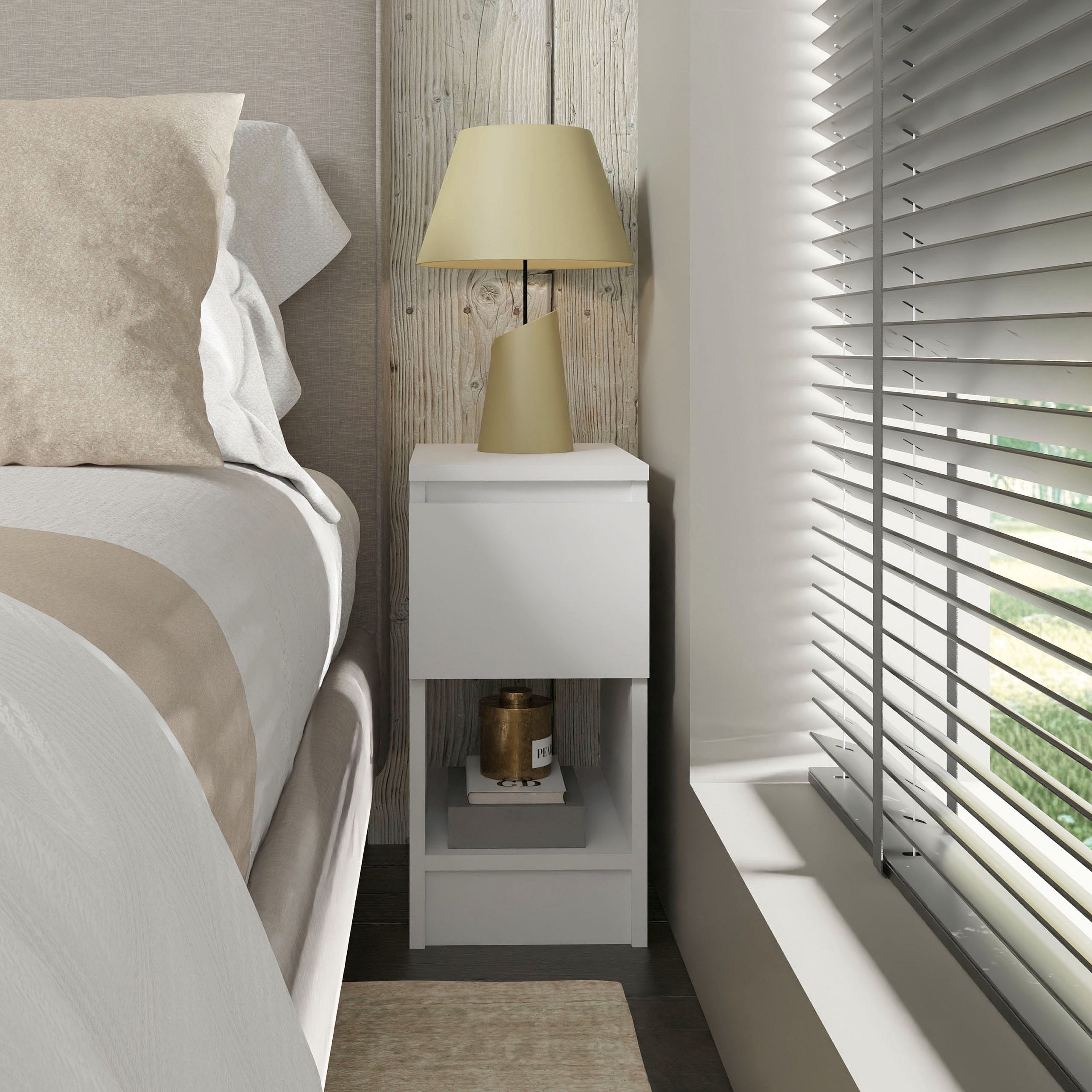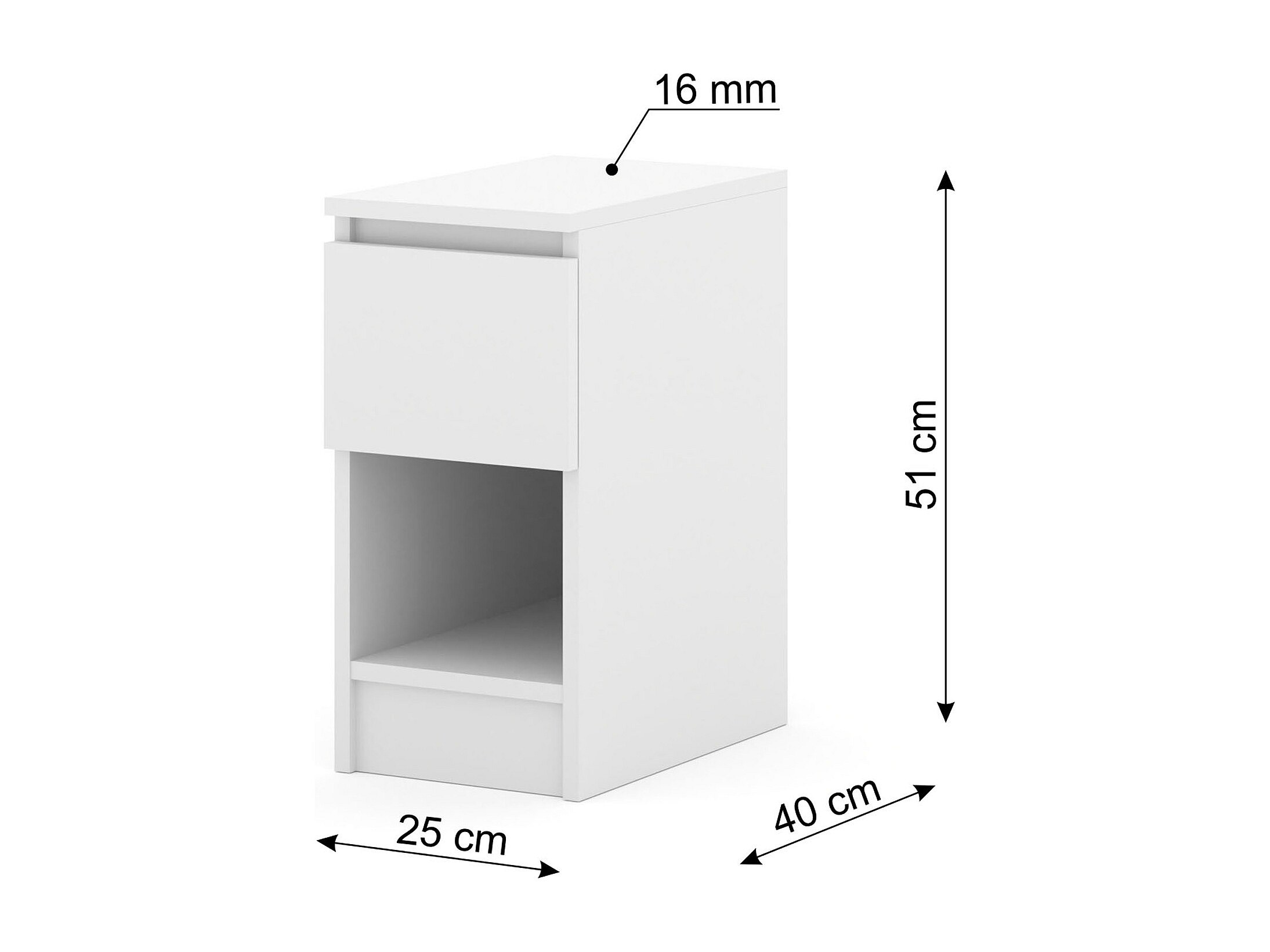 Mesita de noche MAJA 25-1D blanca – moderna, compacta, para espacios pequeños