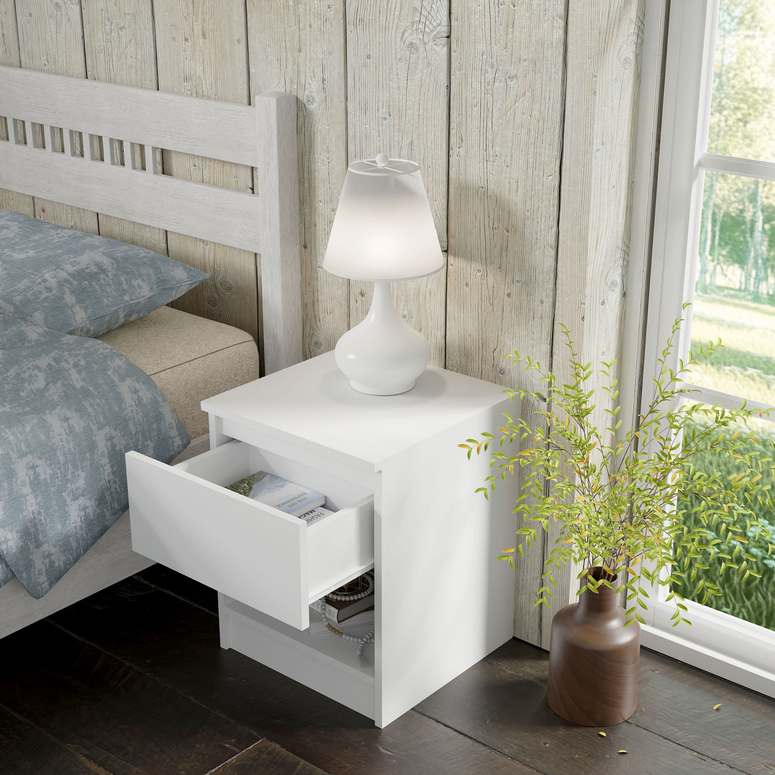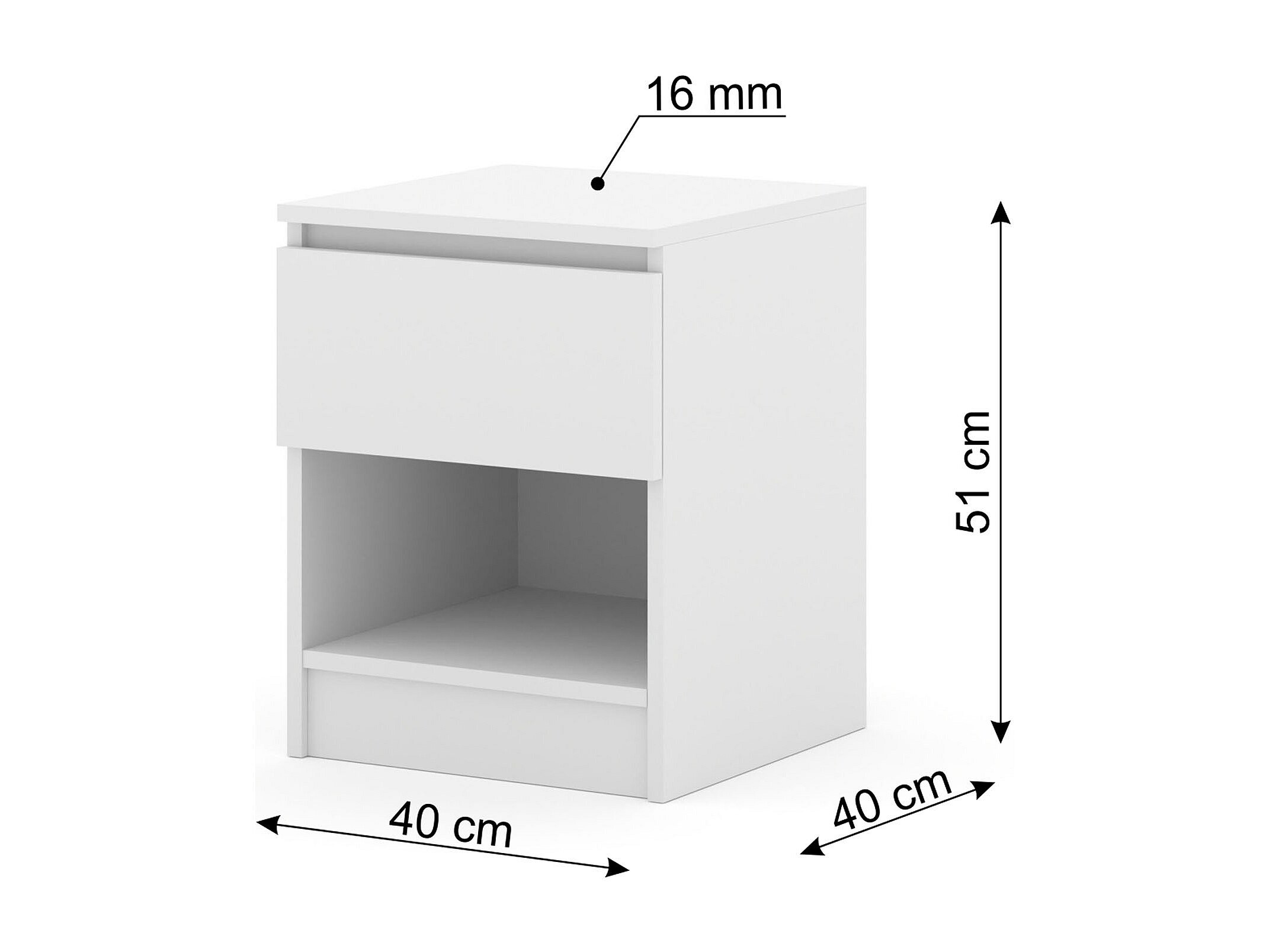 Mesita de noche MAJA 40-1S blanca – moderna, compacta, para espacios pequeños
