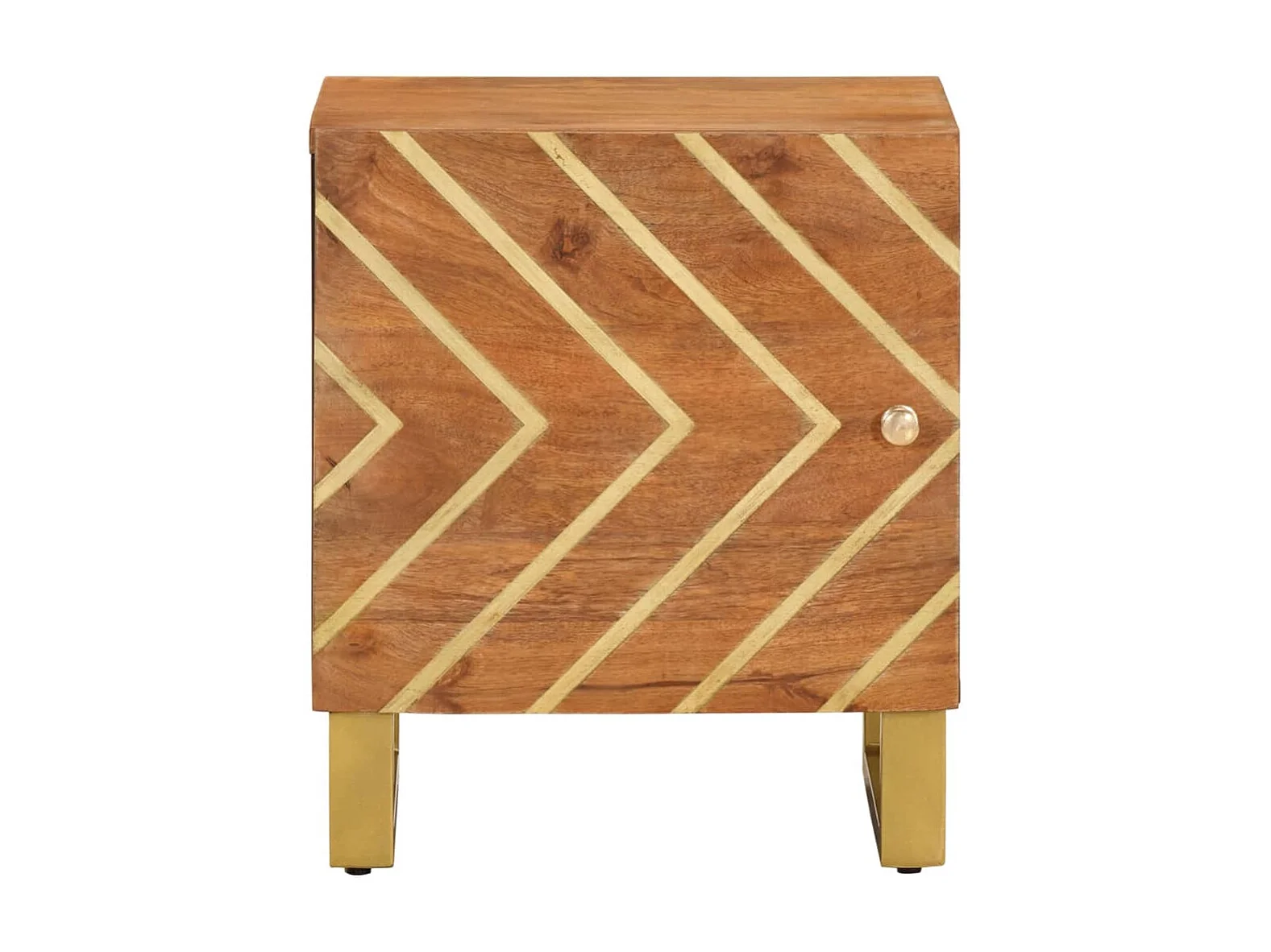 Mesita de noche marrón y negra fabricada en madera maciza de mango.