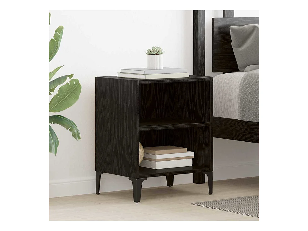 Mesitas de noche | Mesilla de noche 2 uds hierro y madera negro 40x30x55,5 cm