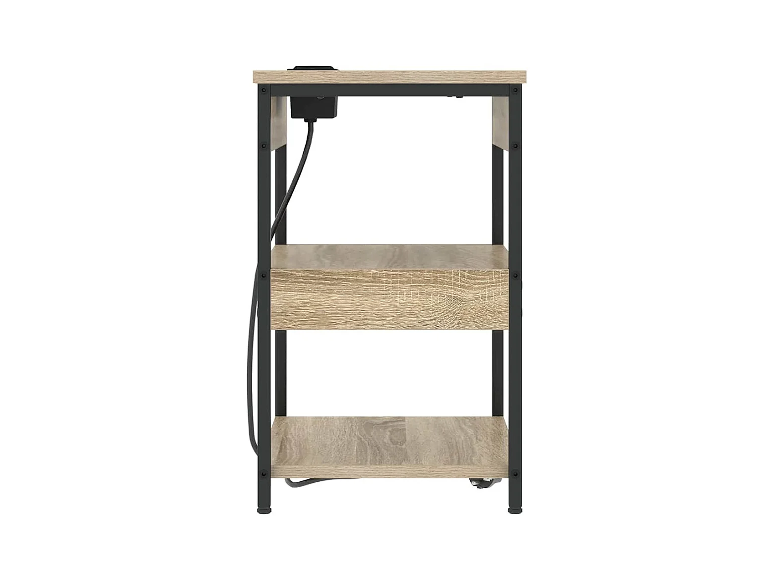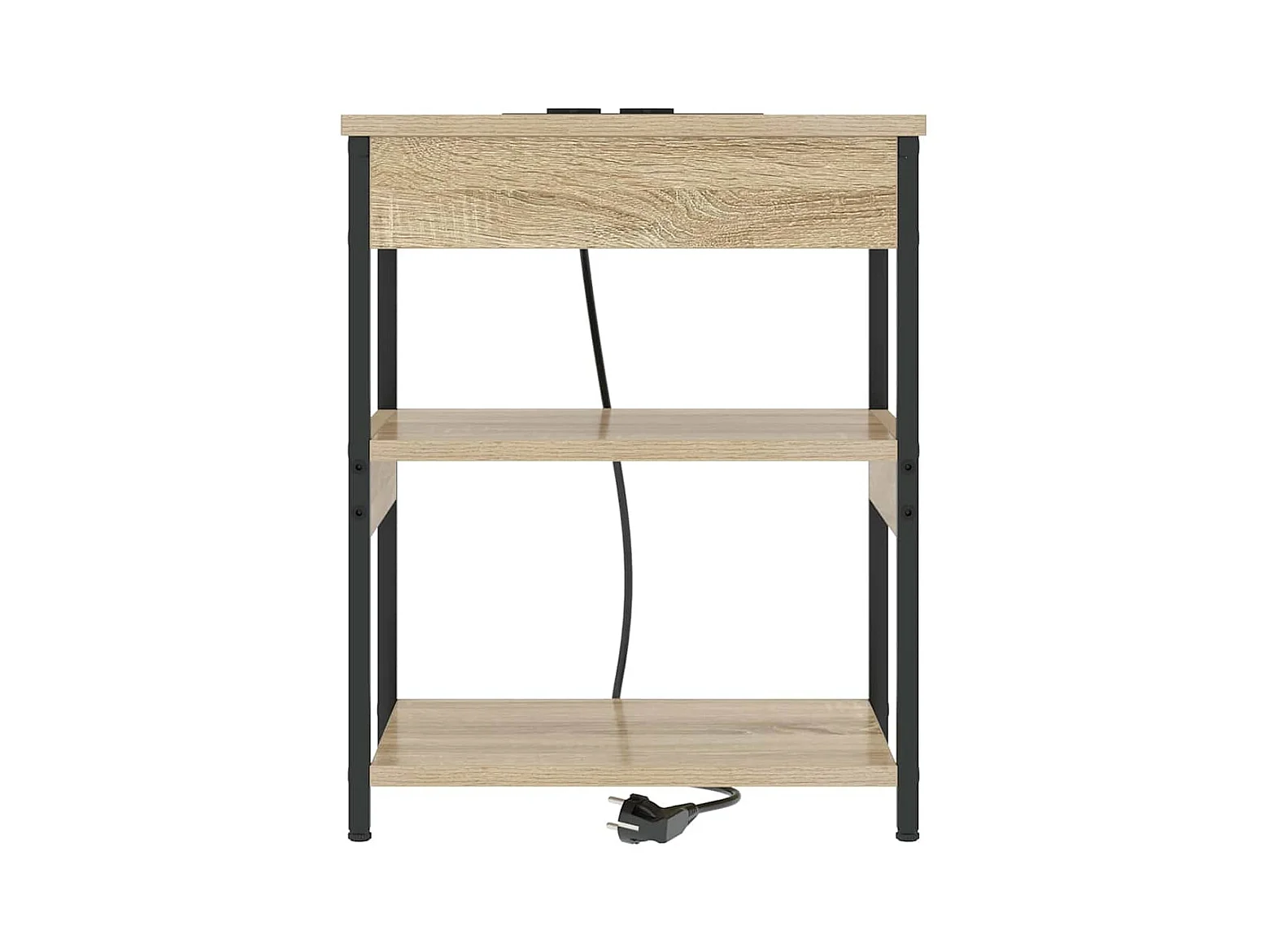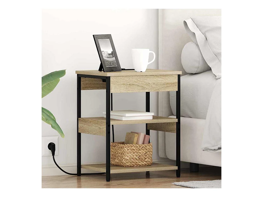 Mesita de Noche | Mesa auxiliar con Estación de Carga Roble Sonoma
