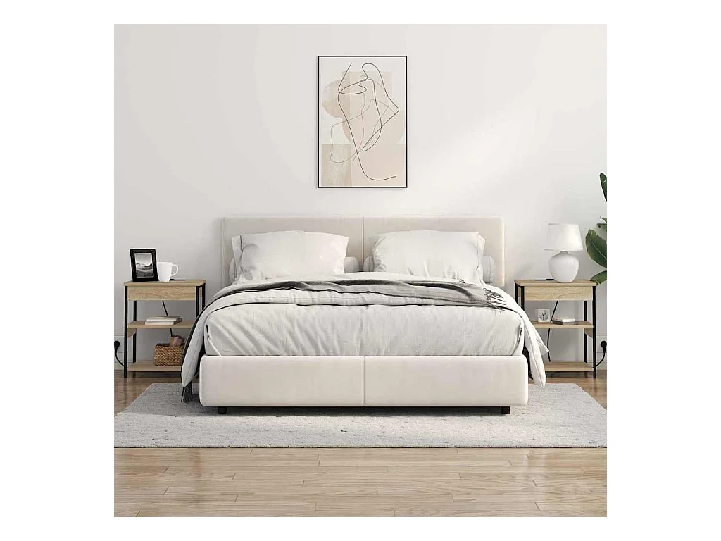 Mesita de Noche | Mesa auxiliar con Estación de Carga 2 uds. Roble Sonoma