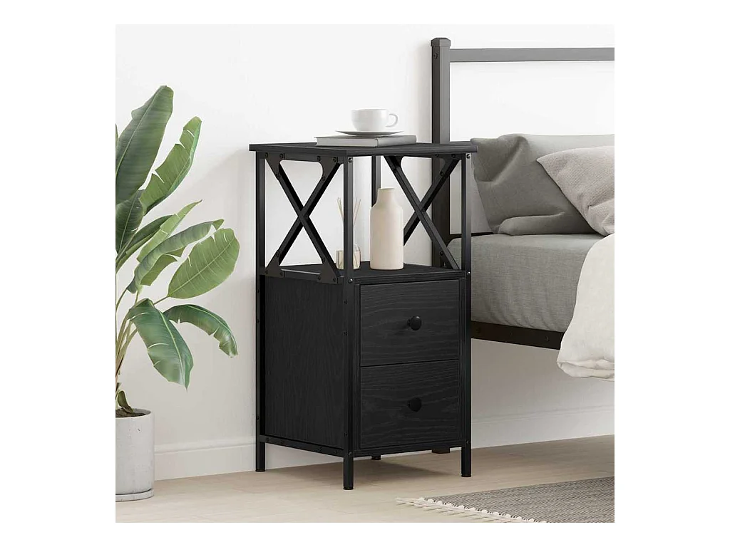 Mesilla de noche | Mesita de noche con 2 cajones negro 36x36x68 cm