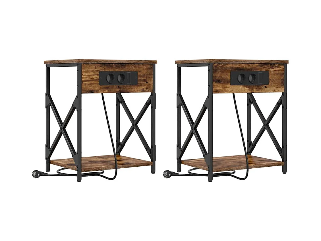 Mesita de Noche | Mesa auxiliar con Estación de Carga 2 uds. Roble ahumado