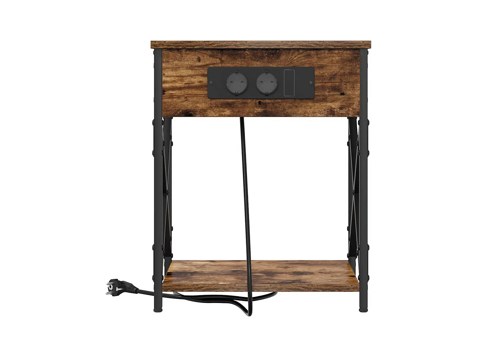 Mesita de Noche | Mesa auxiliar con Estación de Carga Roble ahumado