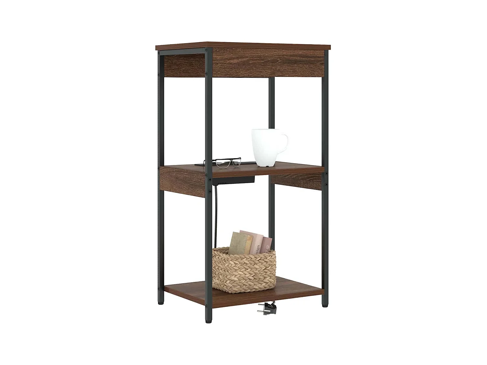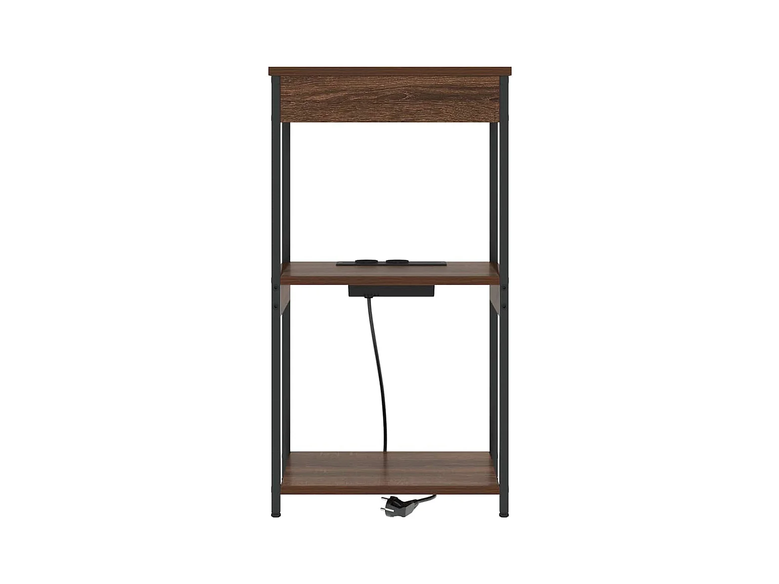 Mesita de Noche | Mesa auxiliar con Estación de Carga con cajón Roble ahumado