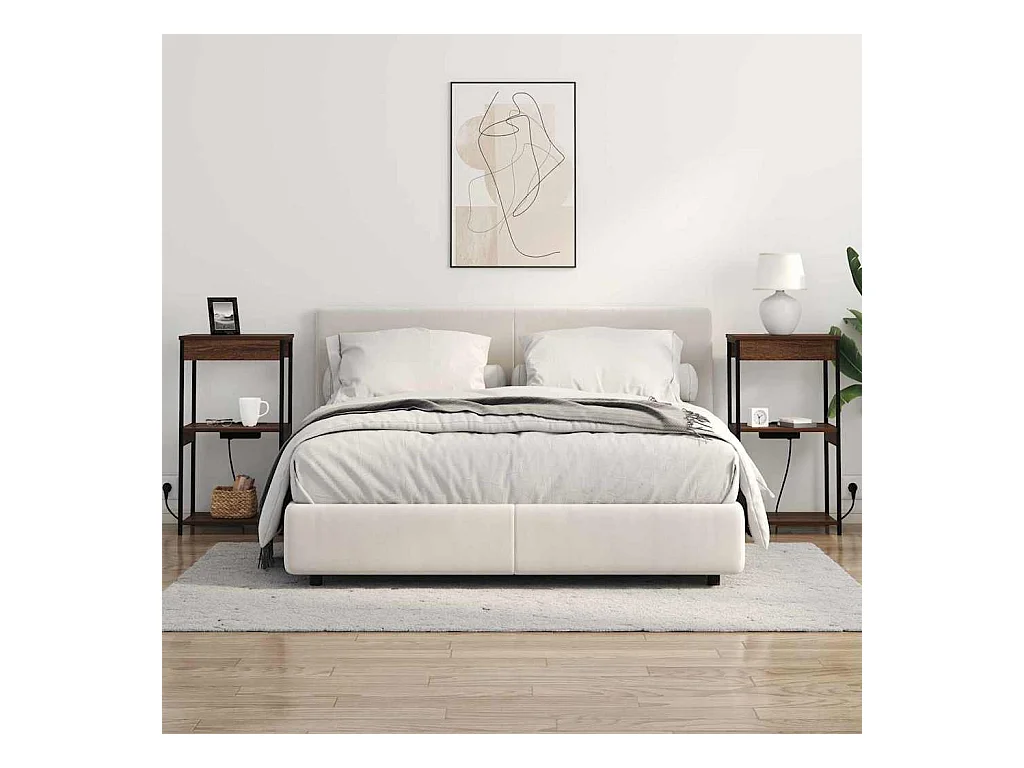 Mesita de Noche | Mesa auxiliar con Estación de Carga Marrón roble
