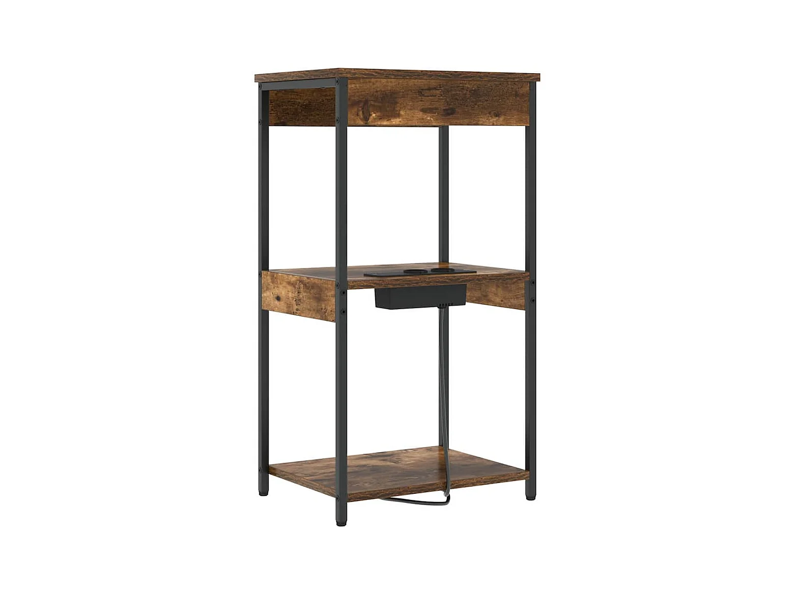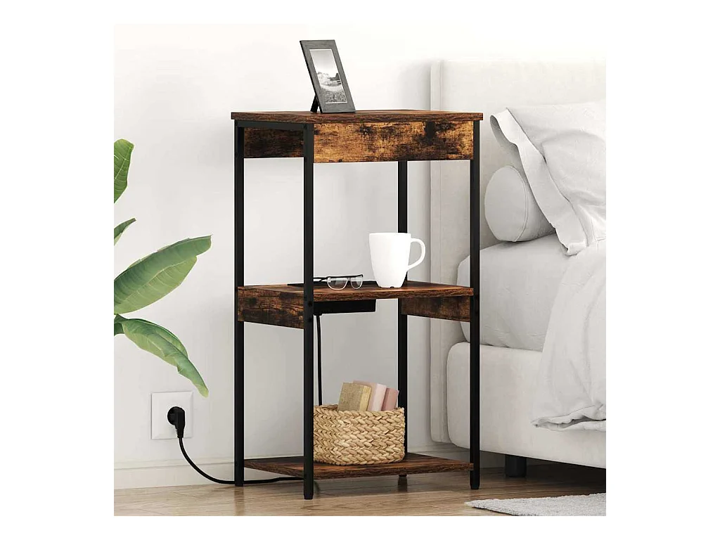 Mesita de Noche | Mesa auxiliar con Estación de Carga con cajón Roble ahumado