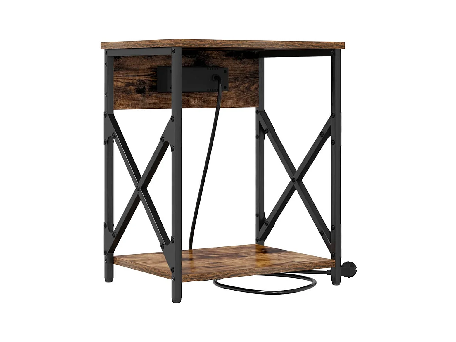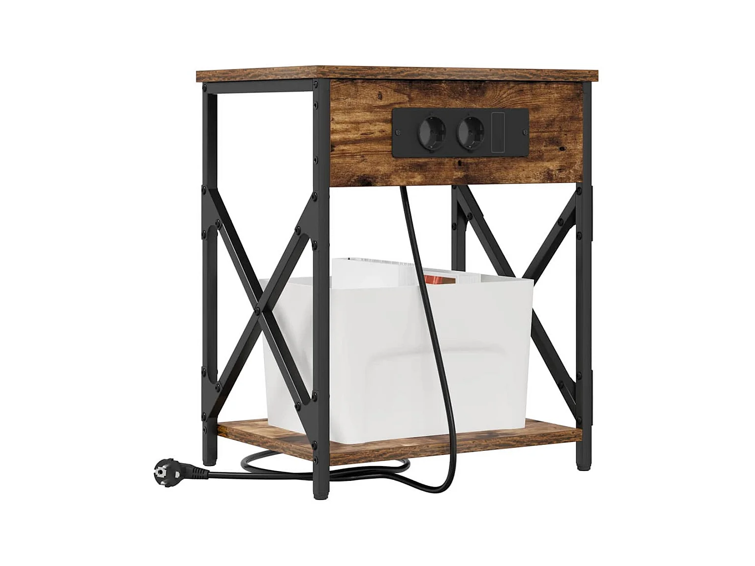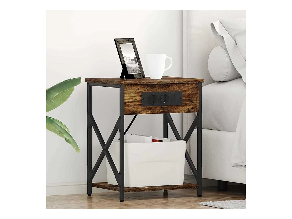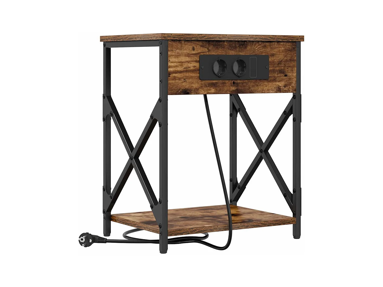 Mesita de Noche | Mesa auxiliar con Estación de Carga Roble ahumado