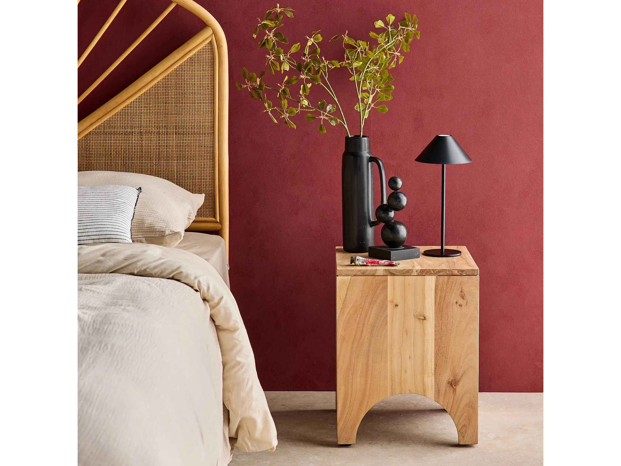 Mesita de noche, mesa auxiliar de madera de acacia , set de 2 natural