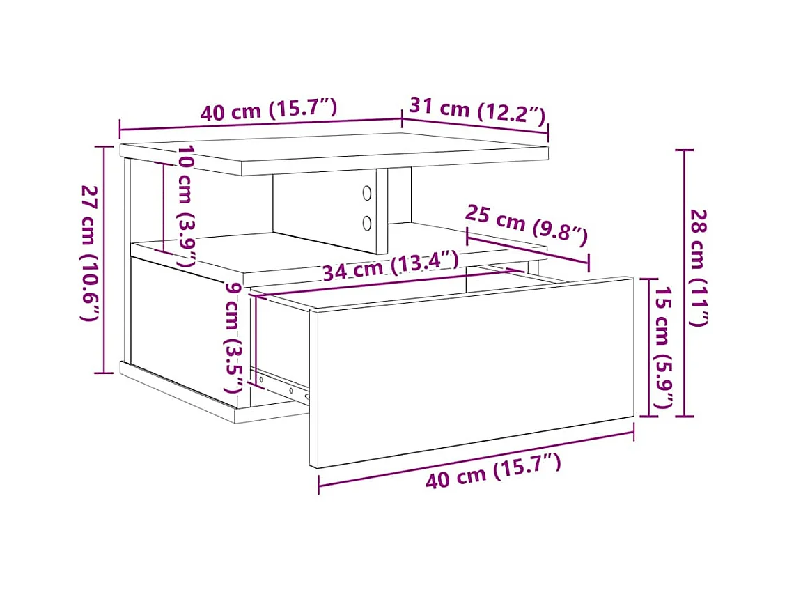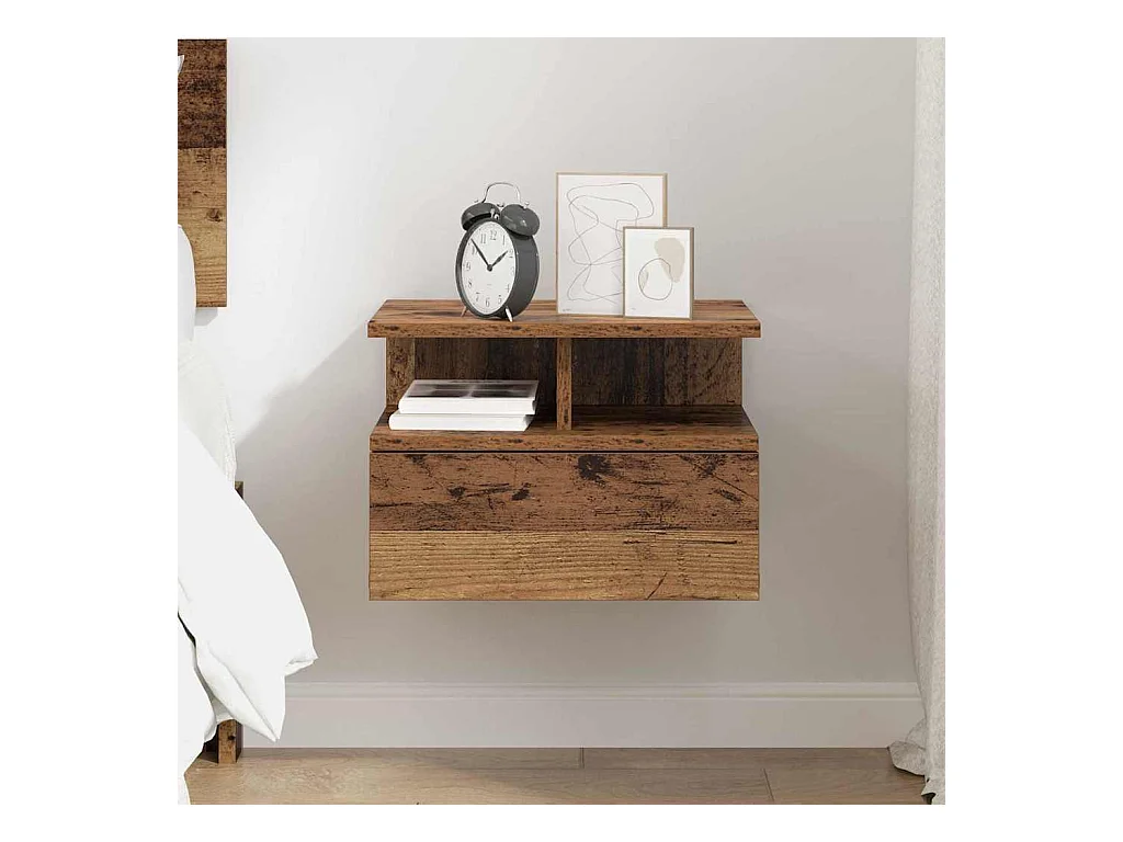 Mesita de noche | Mesa auxiliar Flotante con cajón Madera vieja 40x31x27 cm