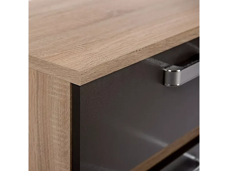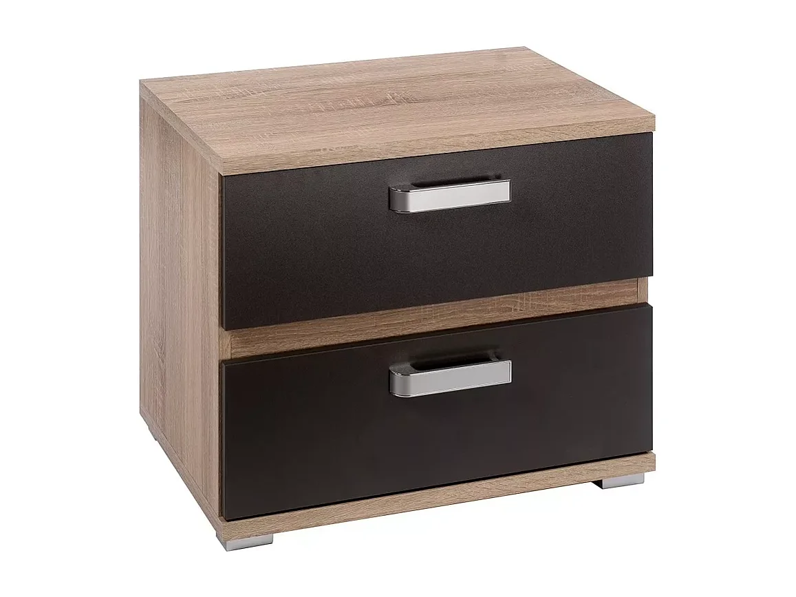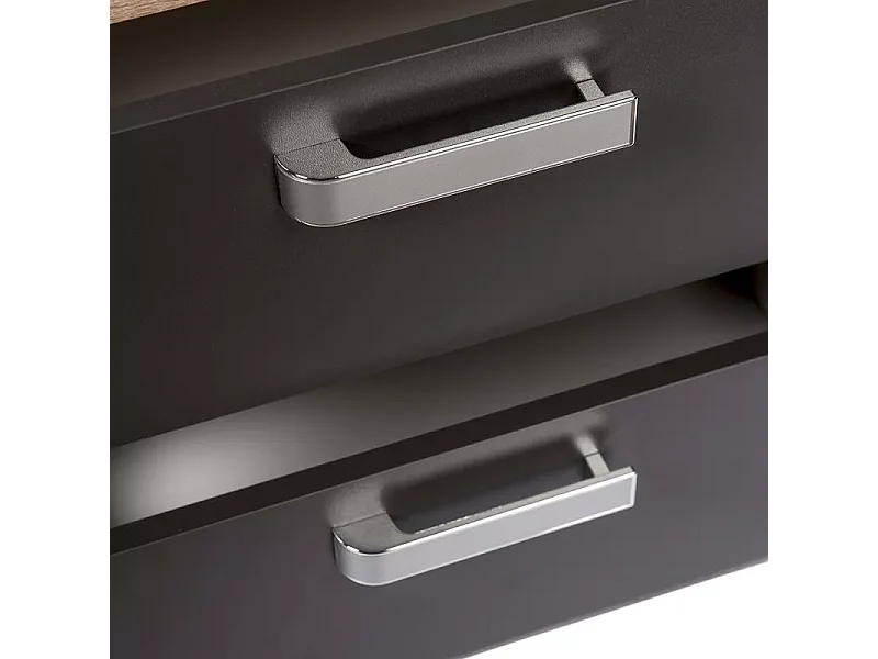 Mesita de Noche, Mesilla de Dormitorio 2 Cajones, Acabado en Color Cambria y Grafito, Medidas: 60 cm (Largo) x 40 cm (Fondo) x 50 cm (Alto) - Meyvaser