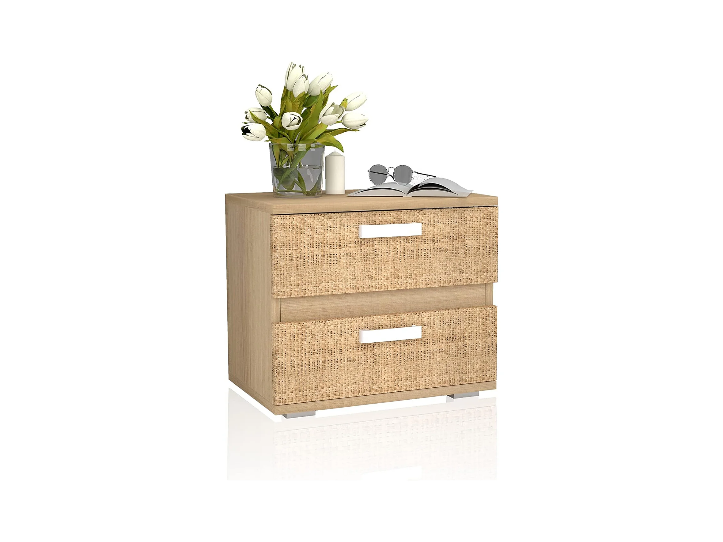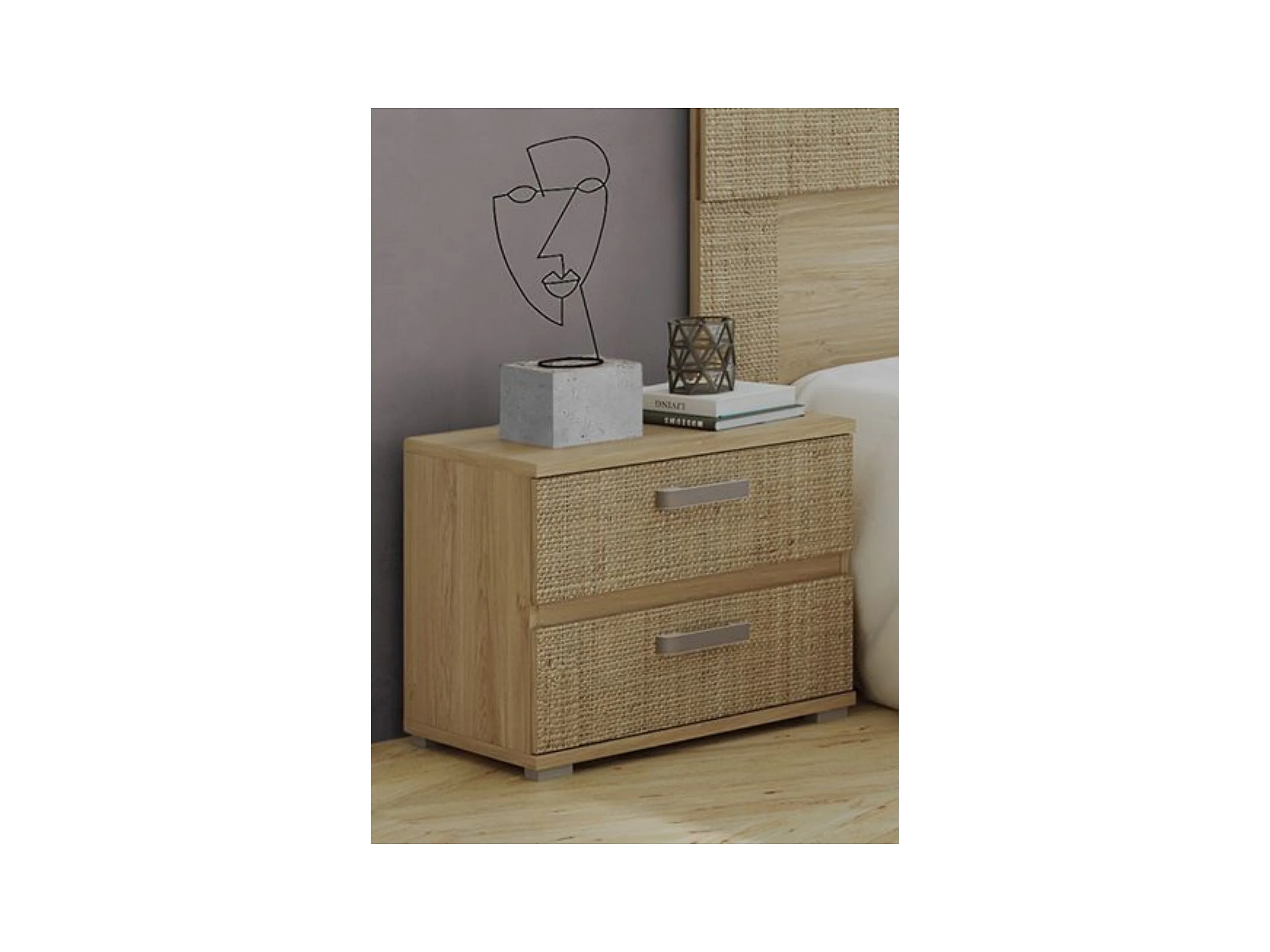 Mesita de Noche, Mesilla de Dormitorio 2 Cajones, Acabado en Color Puccini-Textil, Medidas: 60 cm (Largo) x 40 cm (Fondo) x 50 cm (Alto) - Meyvaser