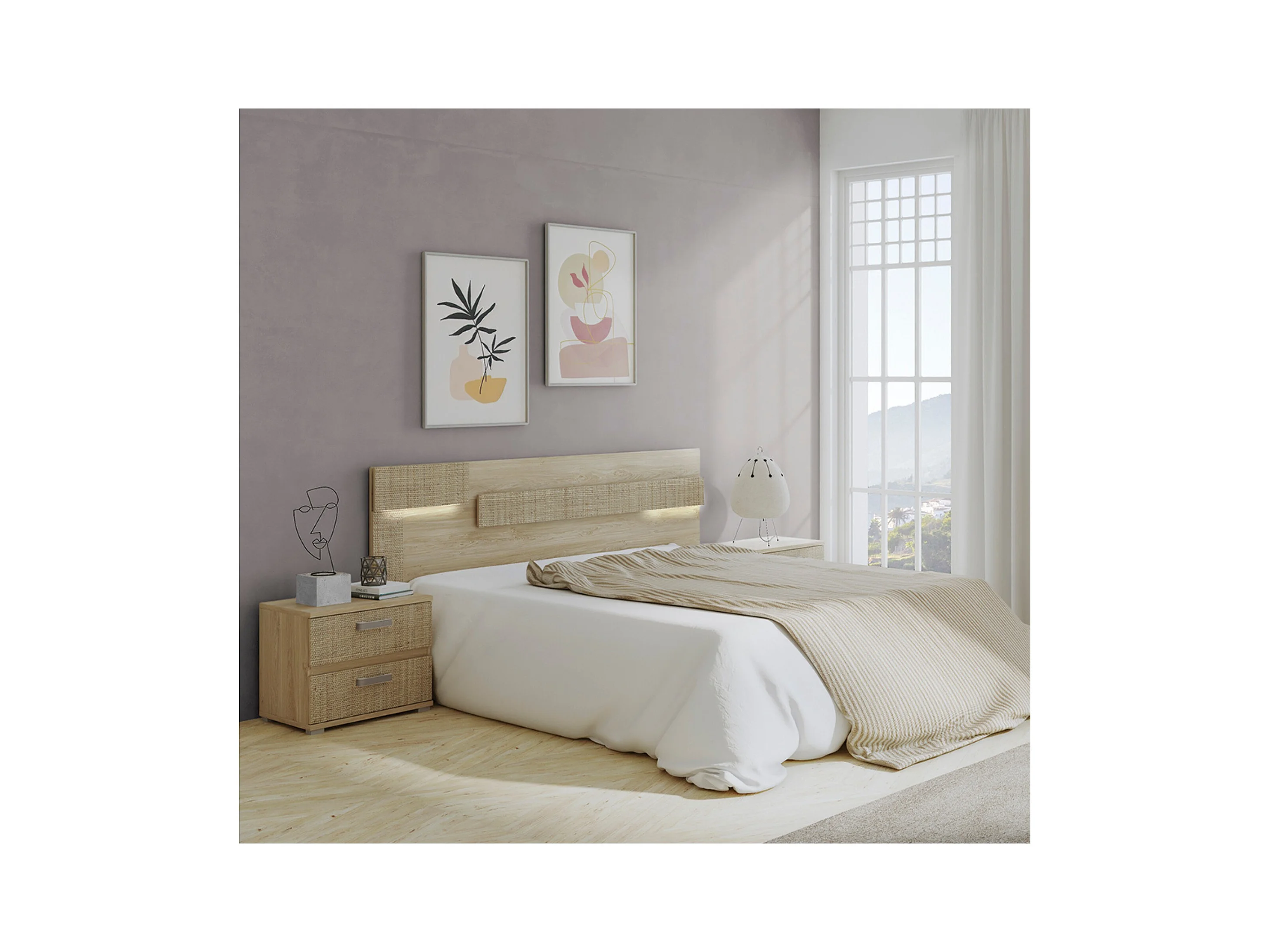 Conjunto Cabecero con Leds y 2 Mesitas de Noche, Dormitorio Matrimonio, Dormitorio Completo, Acabado en Cambrian y Negro – Meyvaser