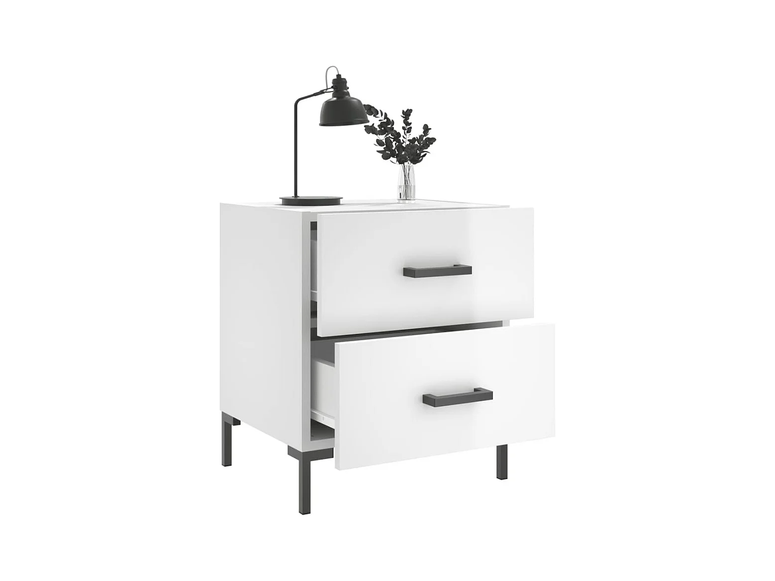 Mesita de noche | Mesilla de noche 2 uds madera ingeniería blanco brillo 40x35x47,5cm