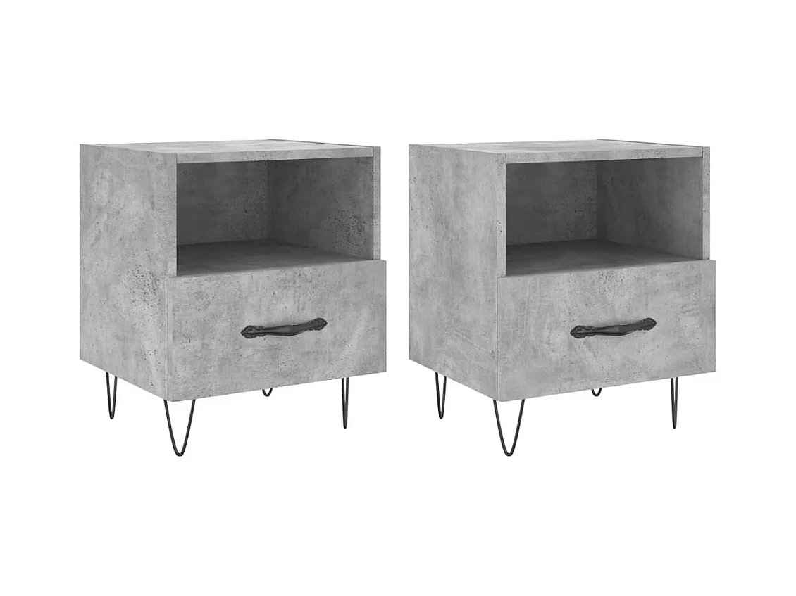 Mesita de noche | Mesilla de noche 2 uds. madera ingeniería gris hormigón 40x35x47,5cm