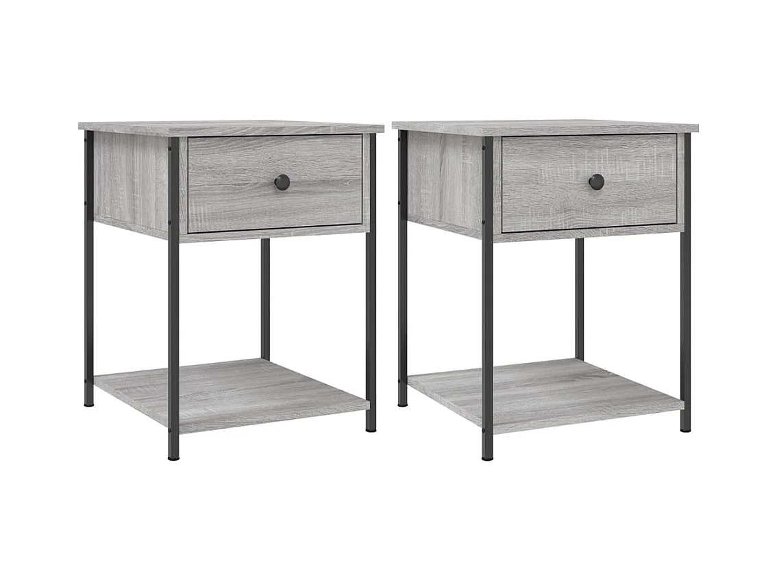 Mesita de noche | Mesilla de noche 2 uds. madera ingeniería gris Sonoma 44x45x58 cm
