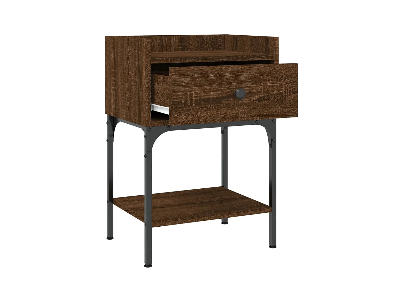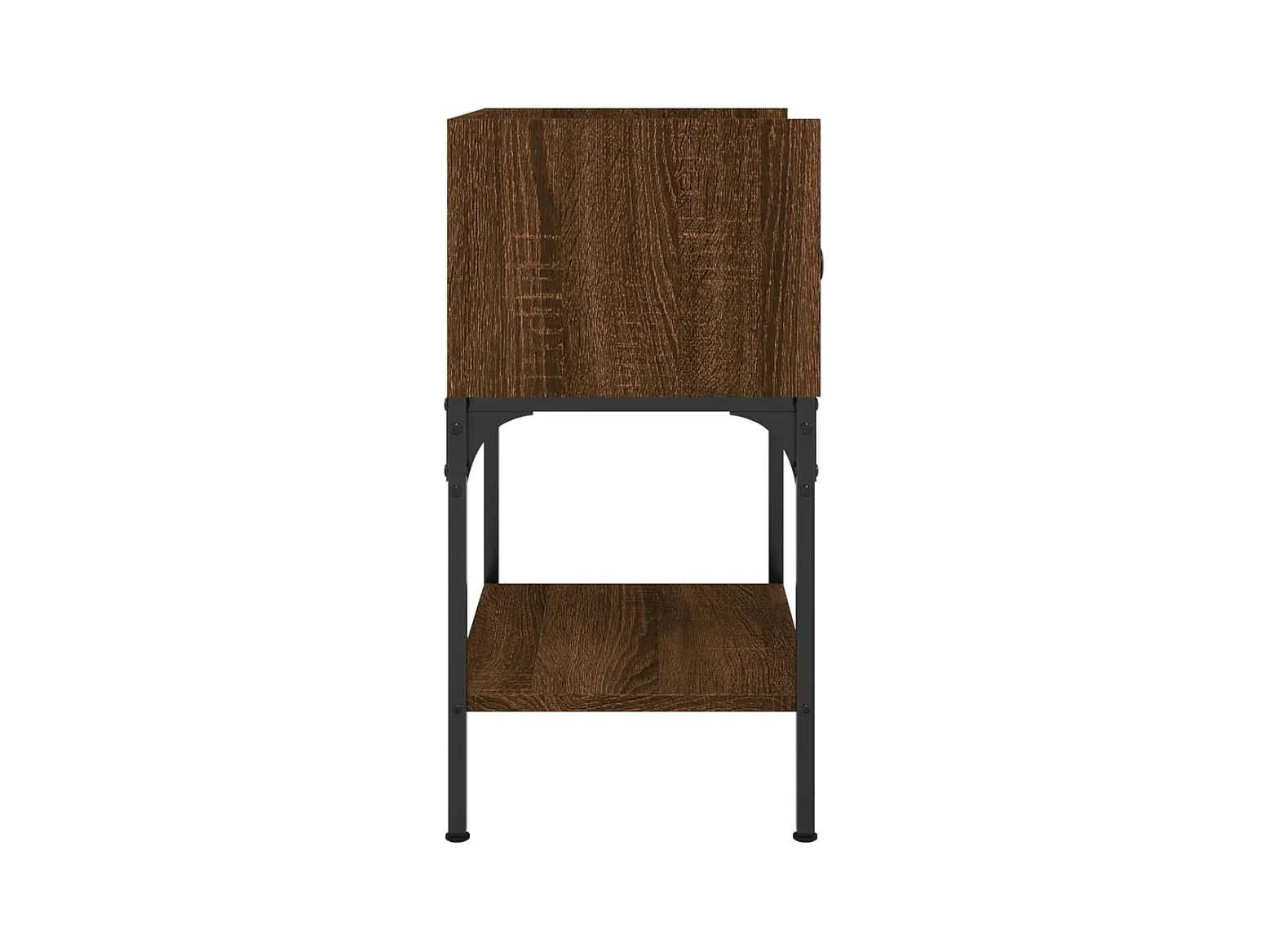 Mesita de Noche | Mesa auxiliar con Estación de Carga Roble ahumado