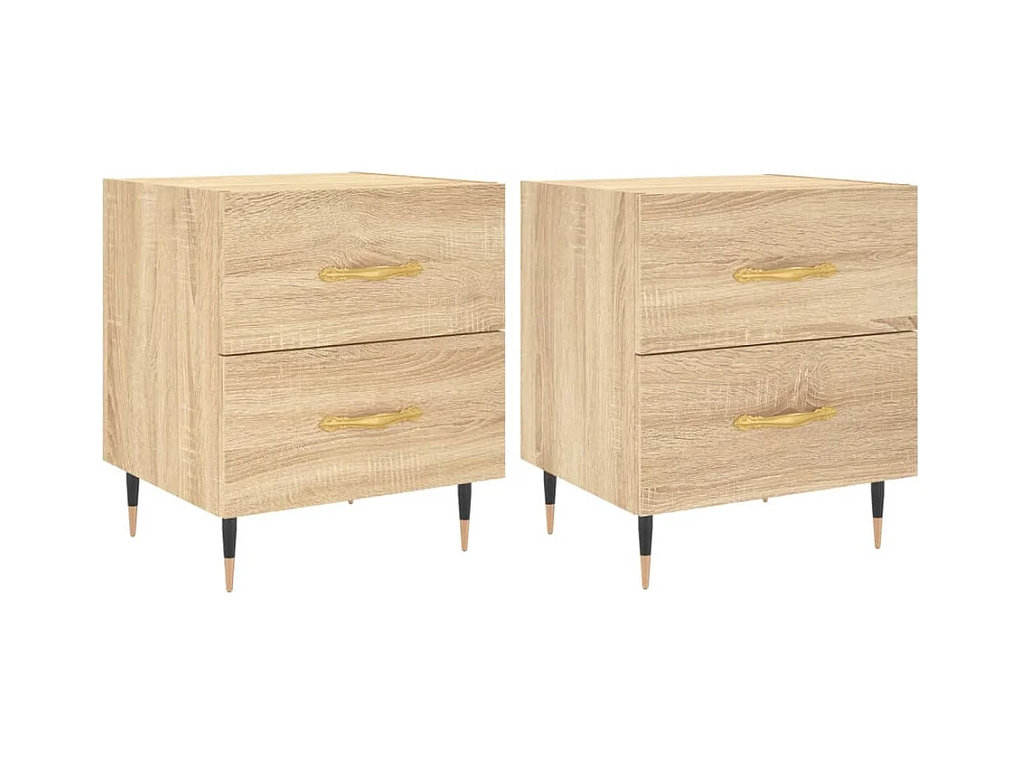 Mesita de noche | Mesilla de noche 2 uds. madera ingeniería roble Sonoma 40x35x47,5 cm