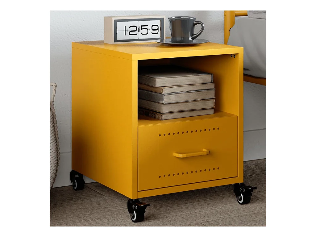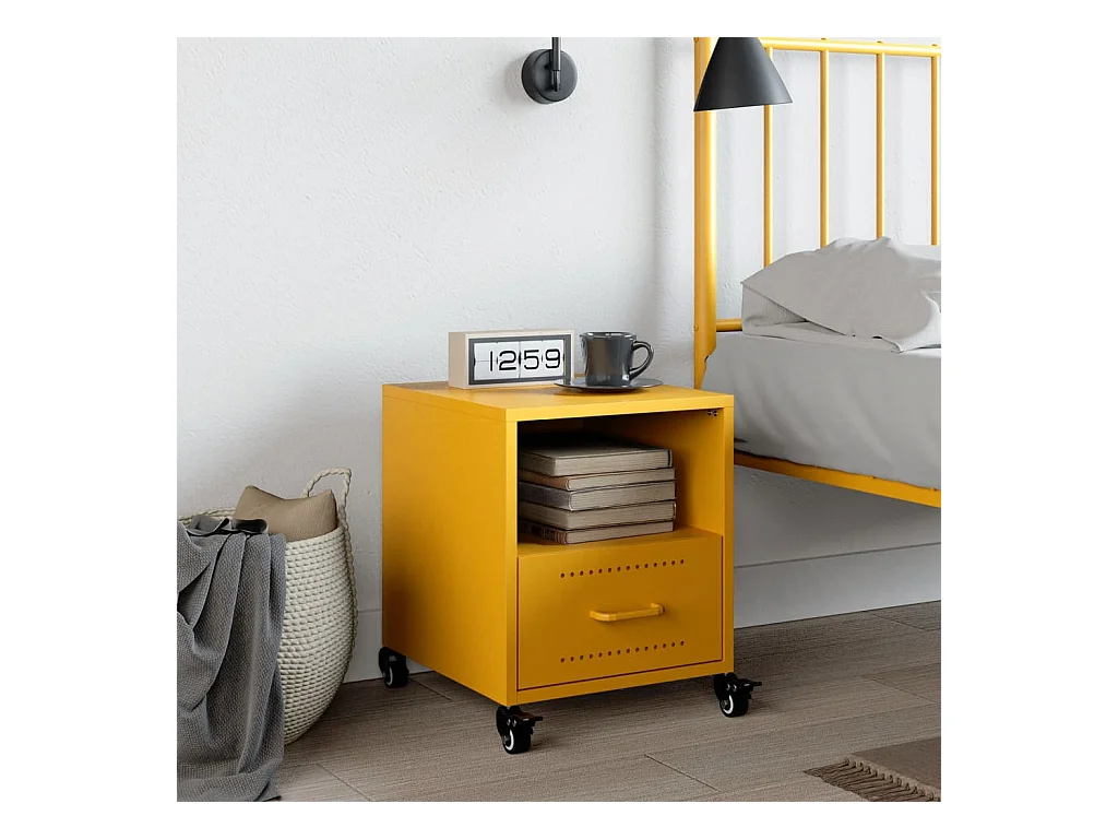 Mesita de noche | Mesilla de noche de acero amarillo mostaza 36x39x50,5 cm