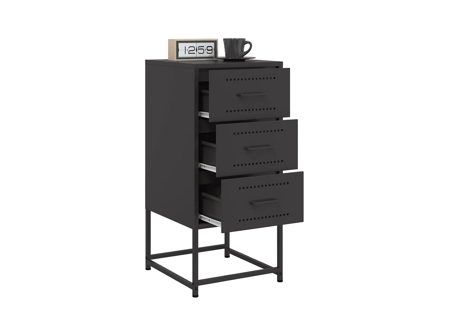 Mesita de noche | Mesilla de noche acero laminado en frío negro 36x39x60,5 cm