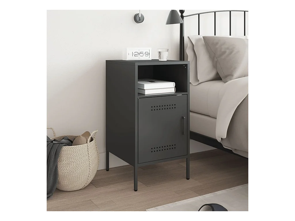 Mesita de noche | Mesilla de noche acero laminado en frío negro 36x39x60,5 cm