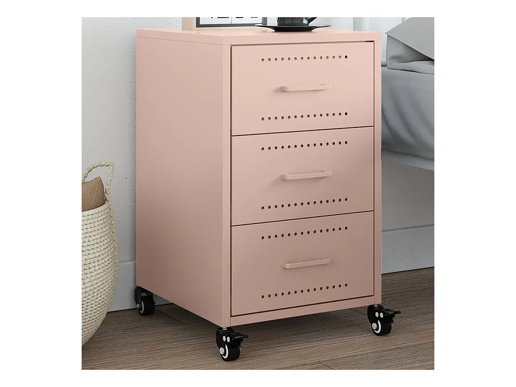 Mesita de noche | Mesilla de noche de acero laminado en frío rosa 36x39x60,5 cm