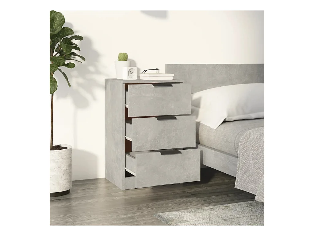 Mesita de noche | Mesilla de noche madera contrachapada gris hormigón 50x36x60 cm