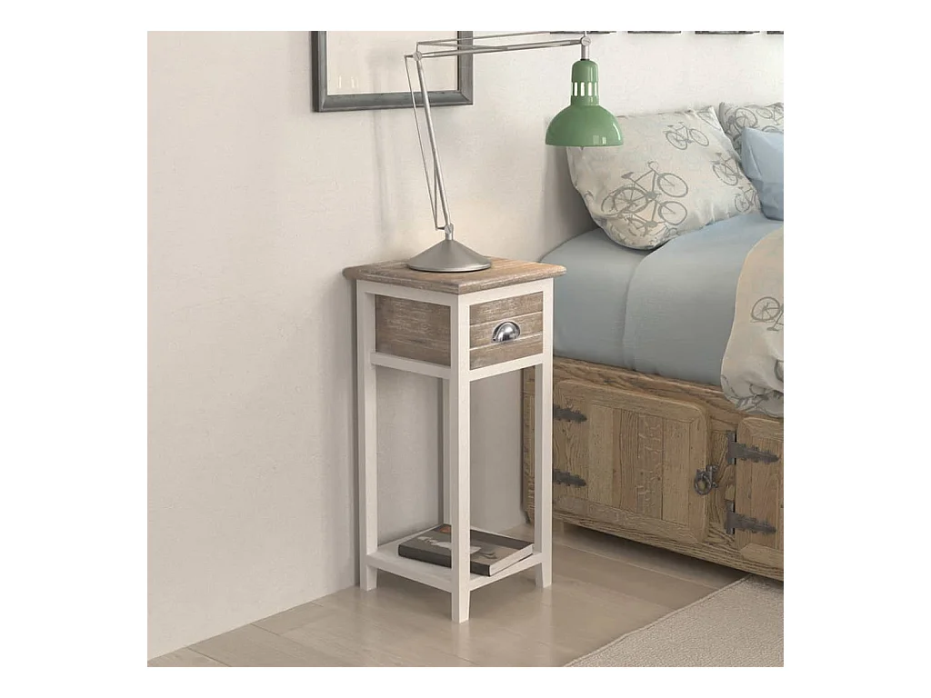 Mesita de noche | Mesilla de noche con 1 cajón marrón y blanca