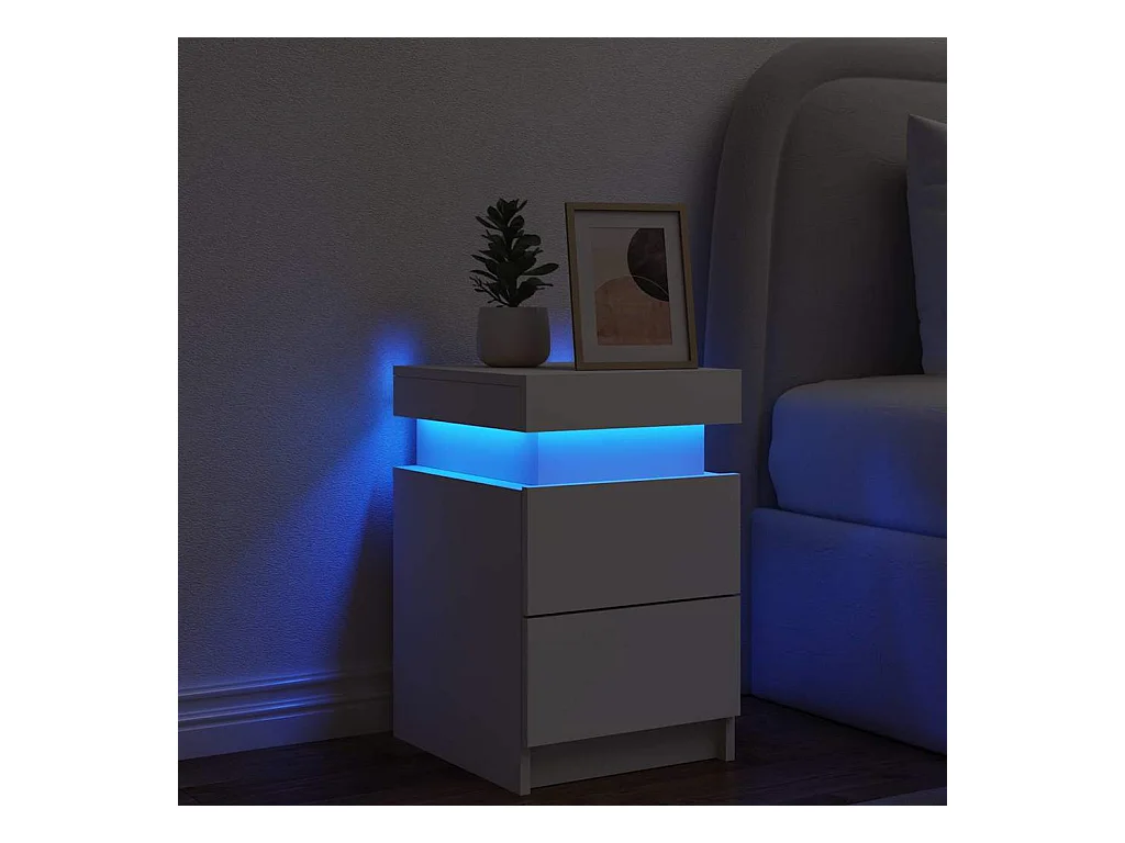 Mesilla de noche | Mesita de noche con luces LED blanca 38x34x50 cm