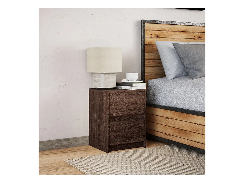 Mesita de noche | Mesilla de noche con luces LED madera de ingeniería roble marrón