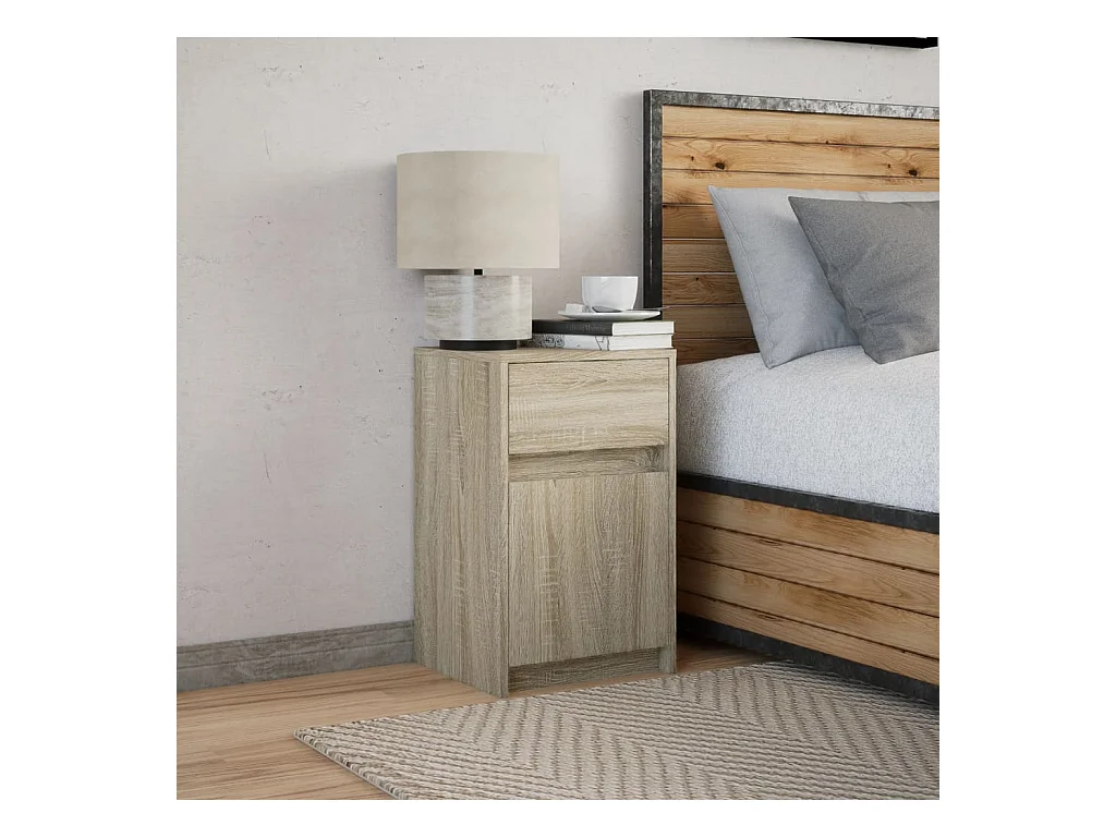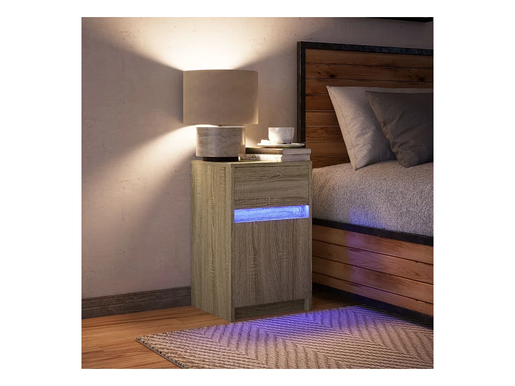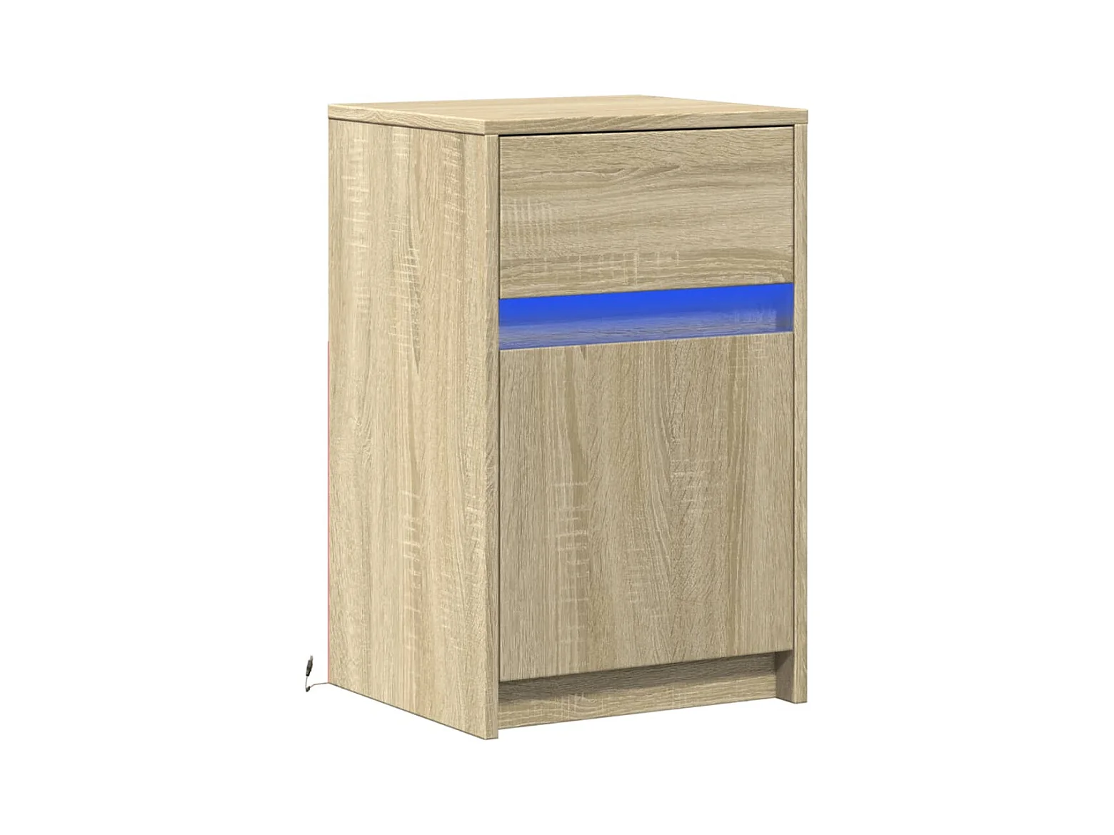 Mesita de noche | Mesilla de noche con luces LED contrachapada Sonoma 60x35x40 cm