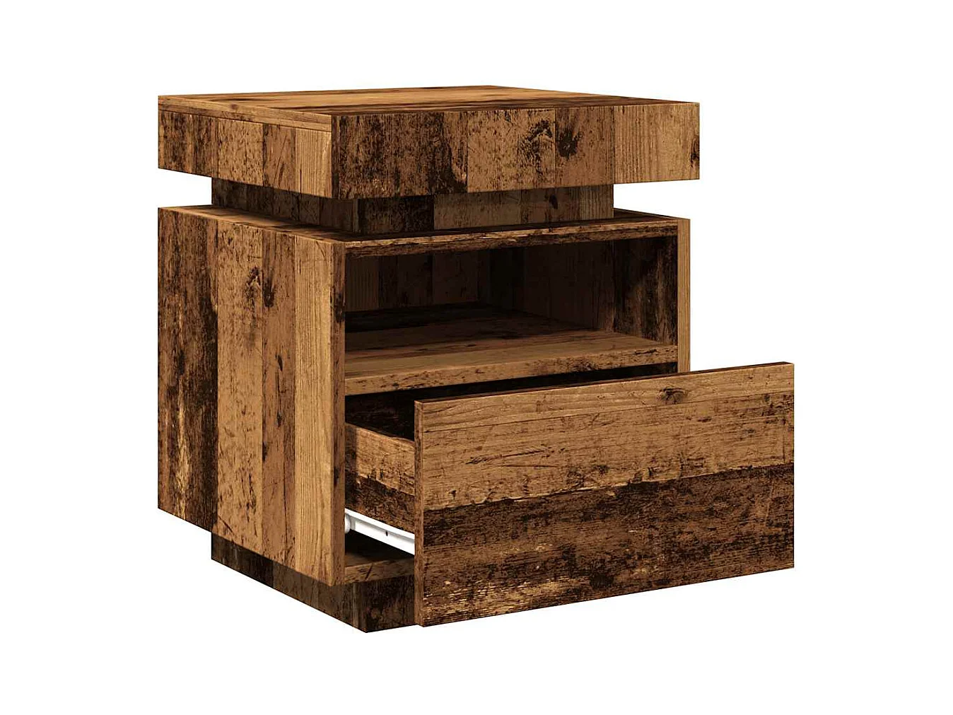 Mesita de noche | Mesilla de noche con LED madera ingeniería envejecida 35x39x55cm