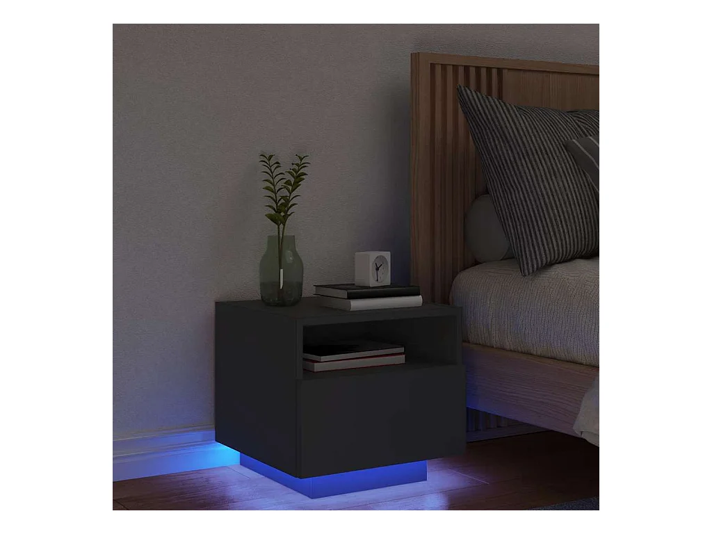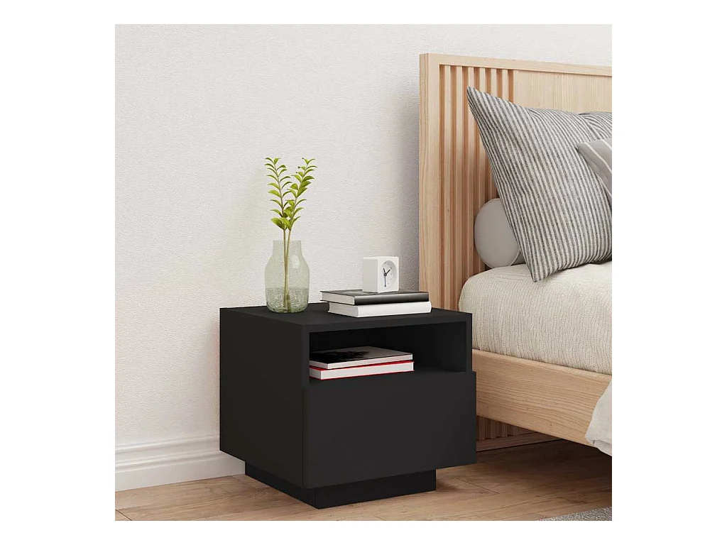 Mesita de noche | Mesilla de noche con luces LED negro 50x40x45 cm