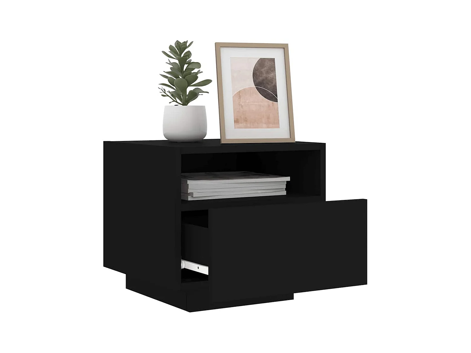 Mesita de noche | Mesilla de noche con luces LED madera de ingeniería negra