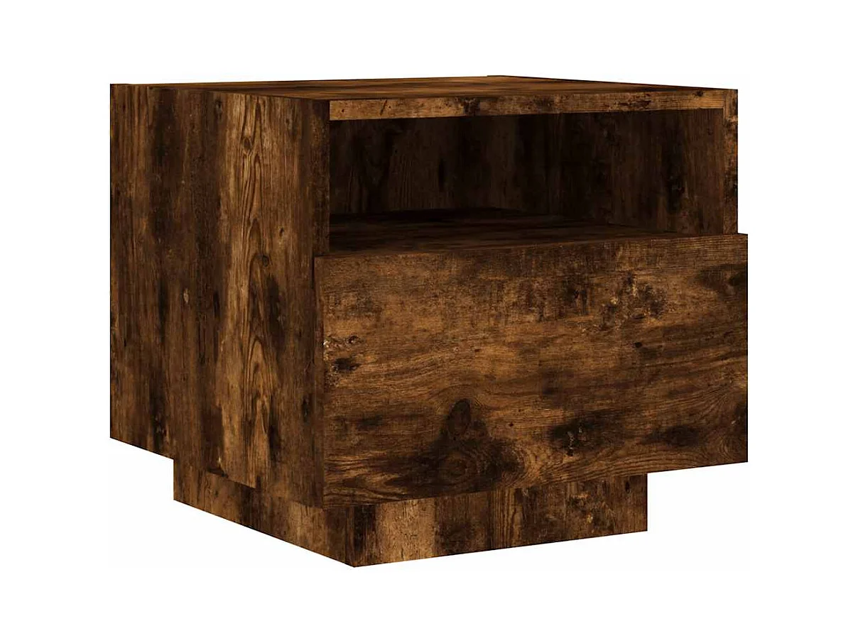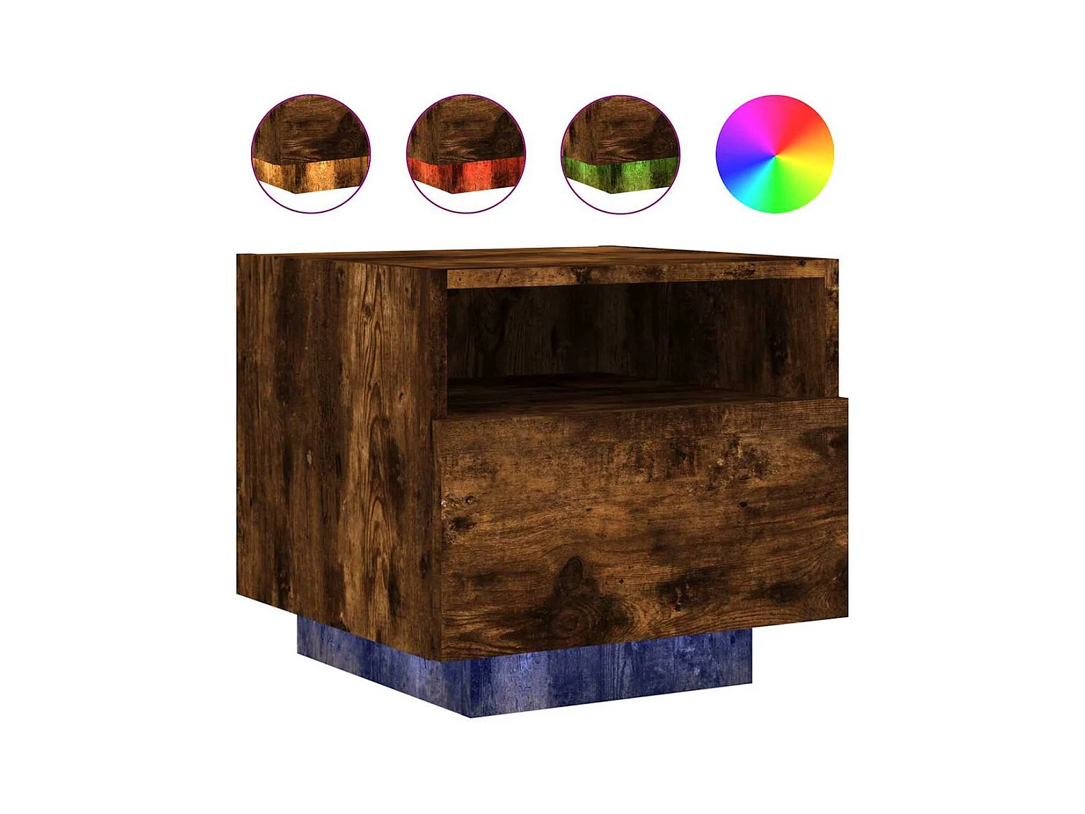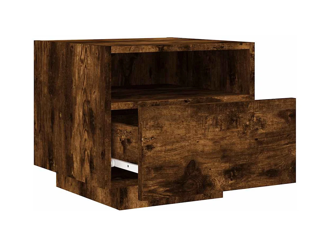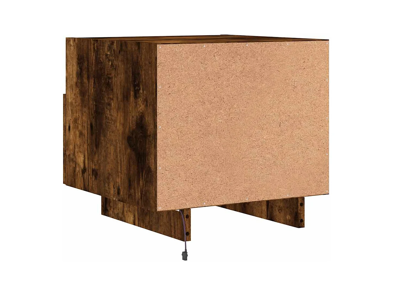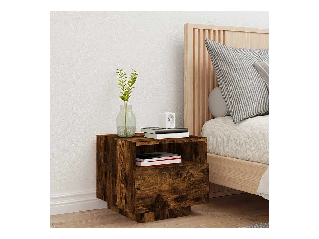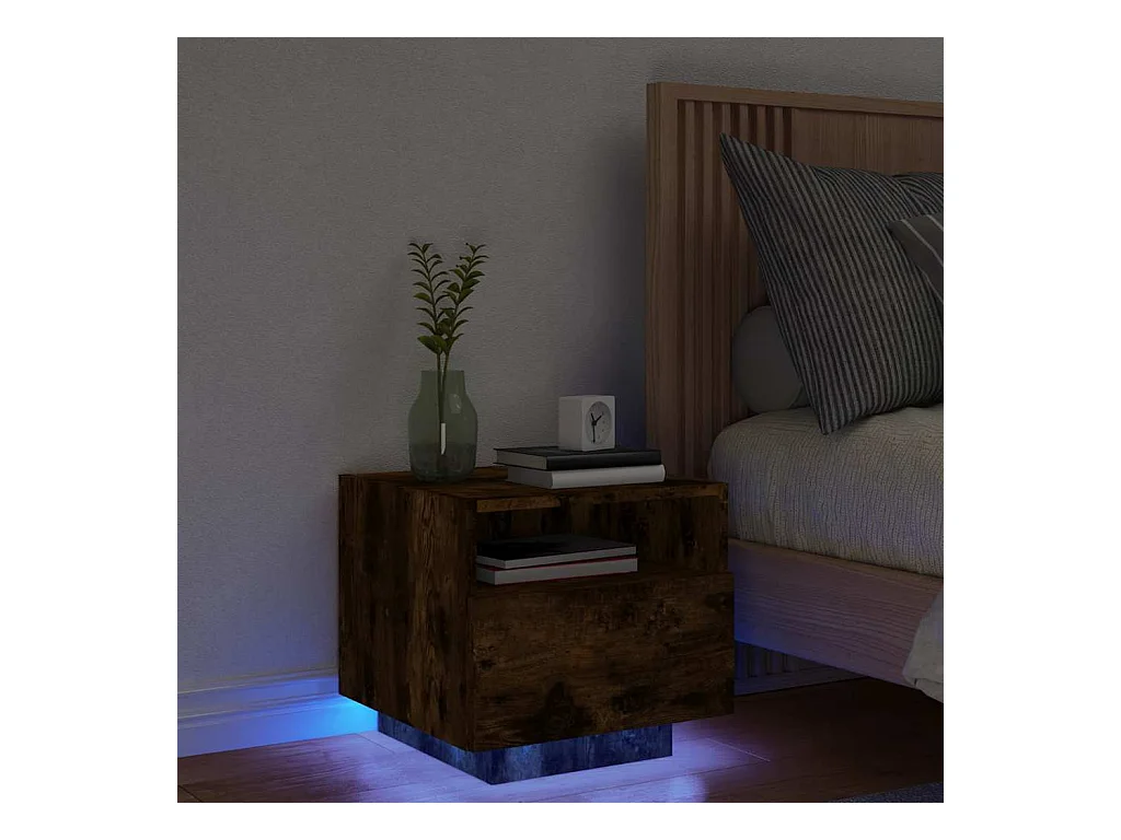 Mesita de noche | Mesilla de noche con luces LED color roble ahumado 60x35x40 cm