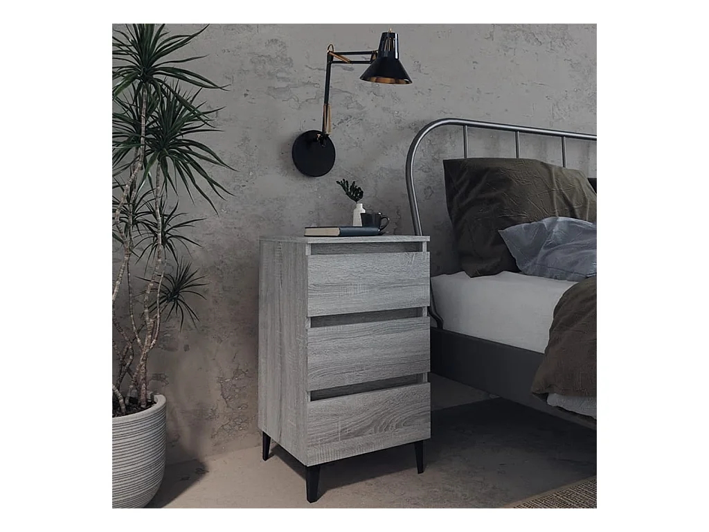 Mesita de noche | Mesilla de noche con patas de metal gris Sonoma 40x35x69 cm