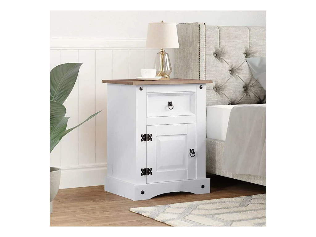 Mesita de noche | Mesilla de noche Corona Range pino mexicano blanco 53x39x67 cm