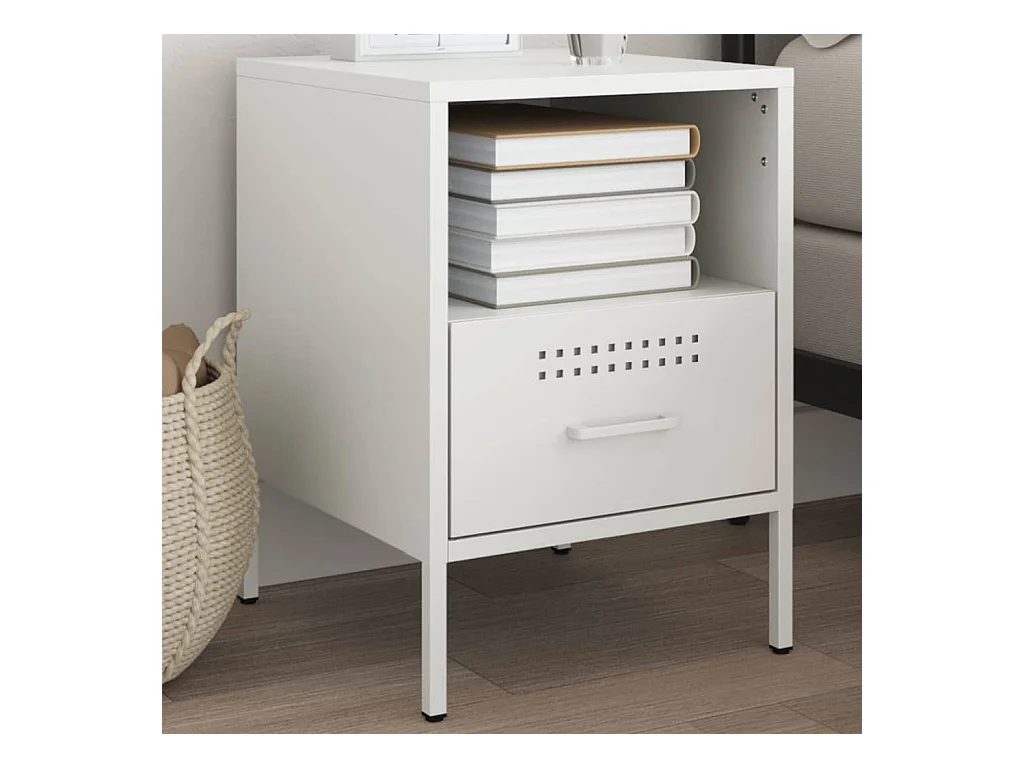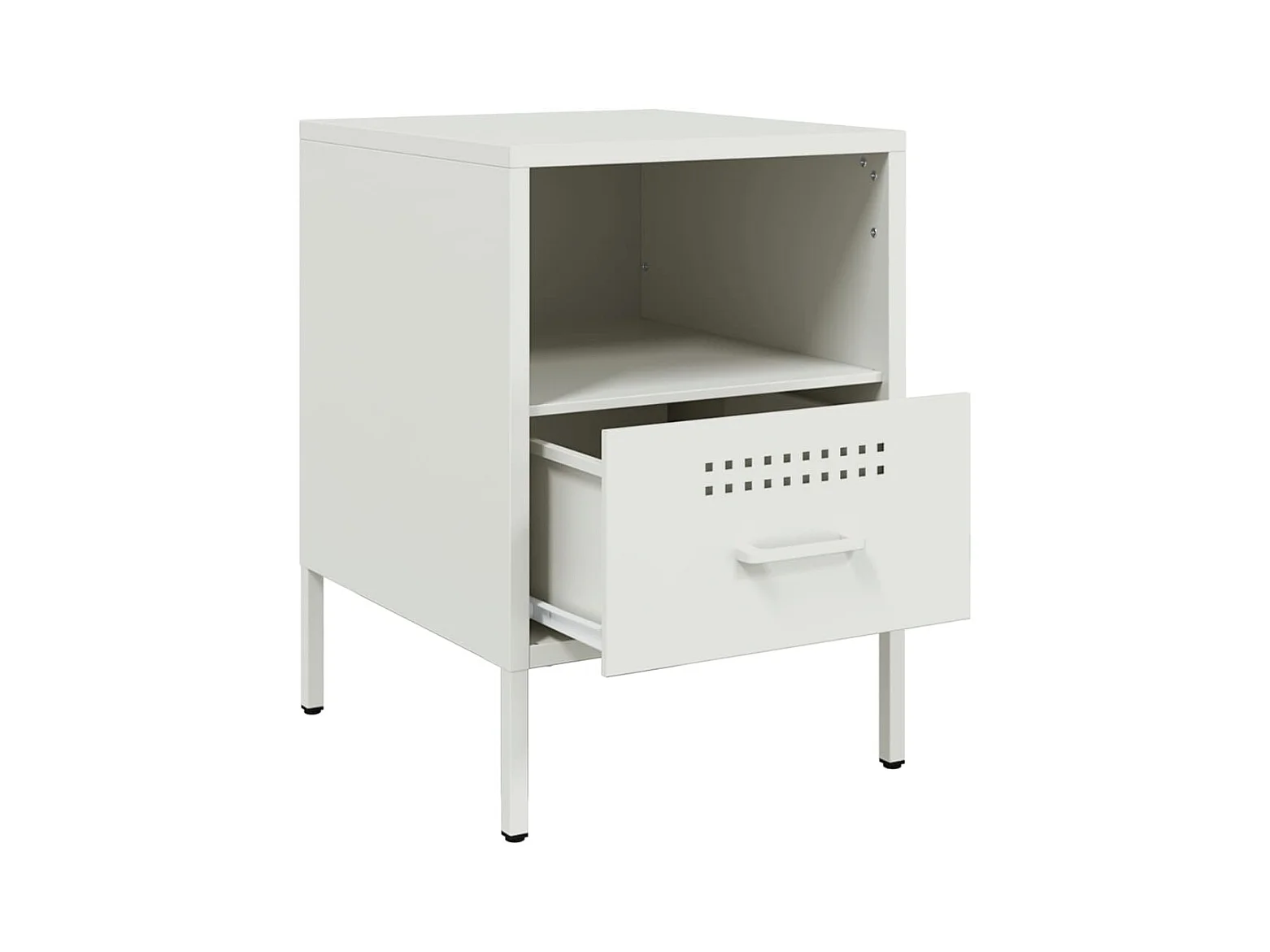 Mesita de noche | Mesilla de noche de acero laminado en frío blanco 36x39x60,5 cm