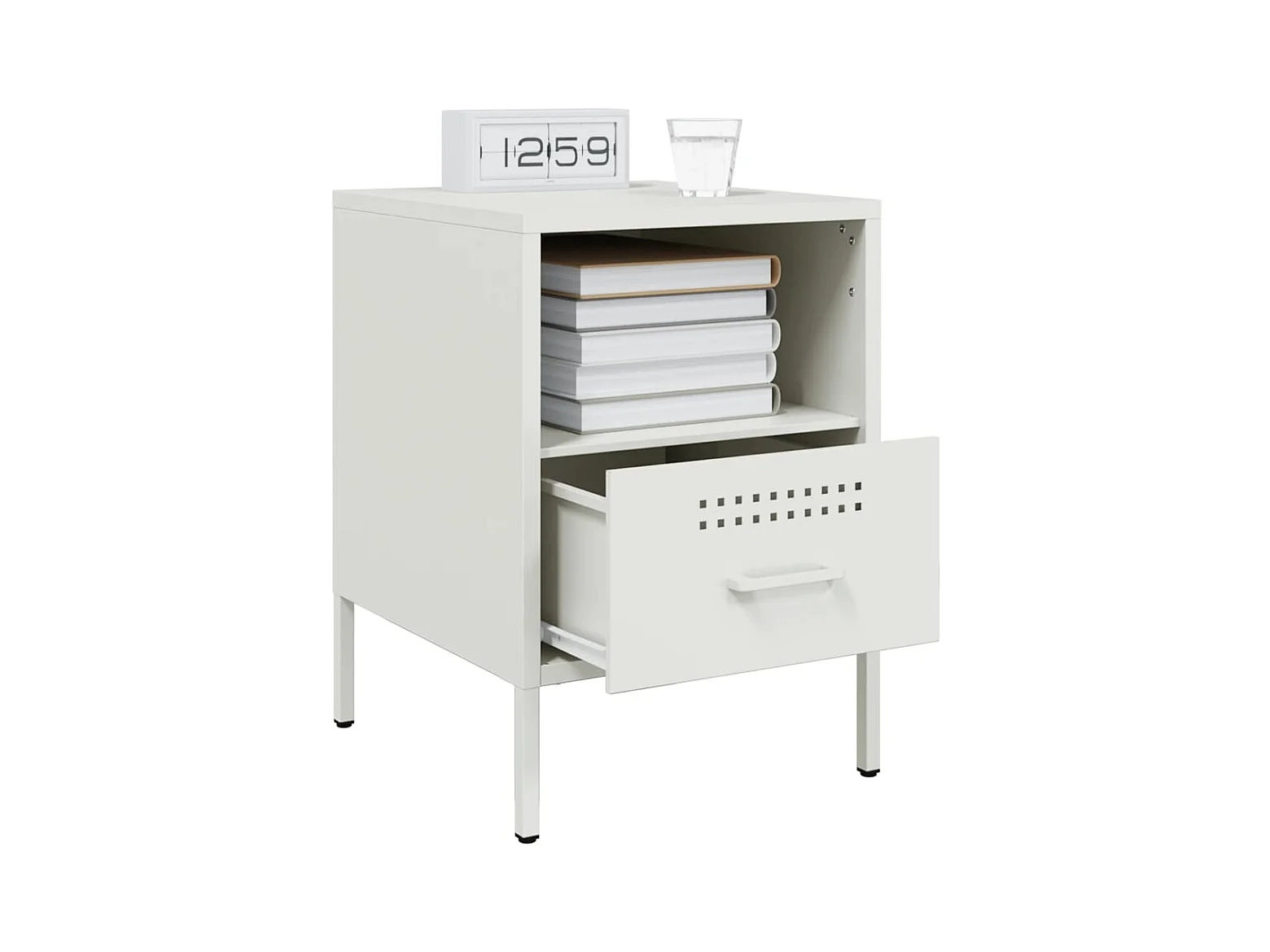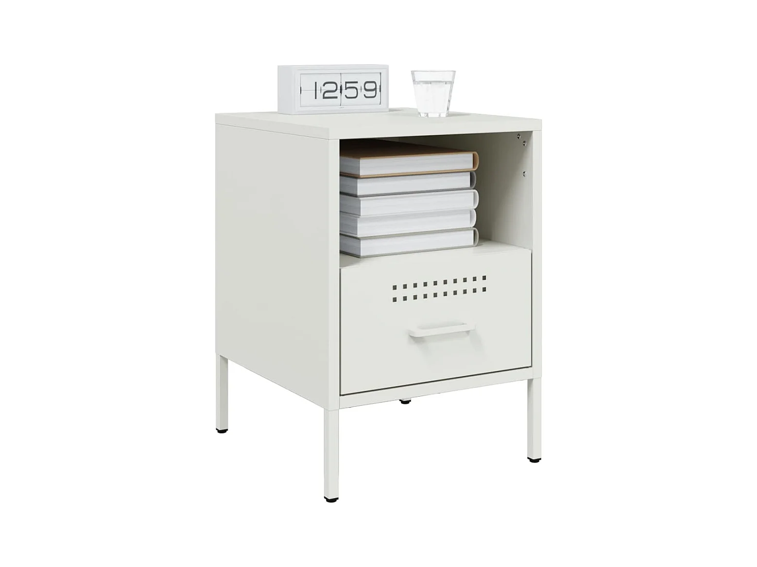 Mesita de noche | Mesilla de noche de acero blanco 36x39x50,5 cm