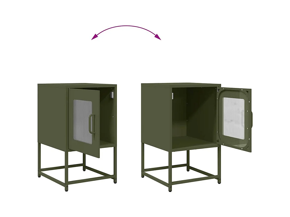 Mesita de noche | Mesilla de noche de acero verde oliva 36x39x50,5 cm